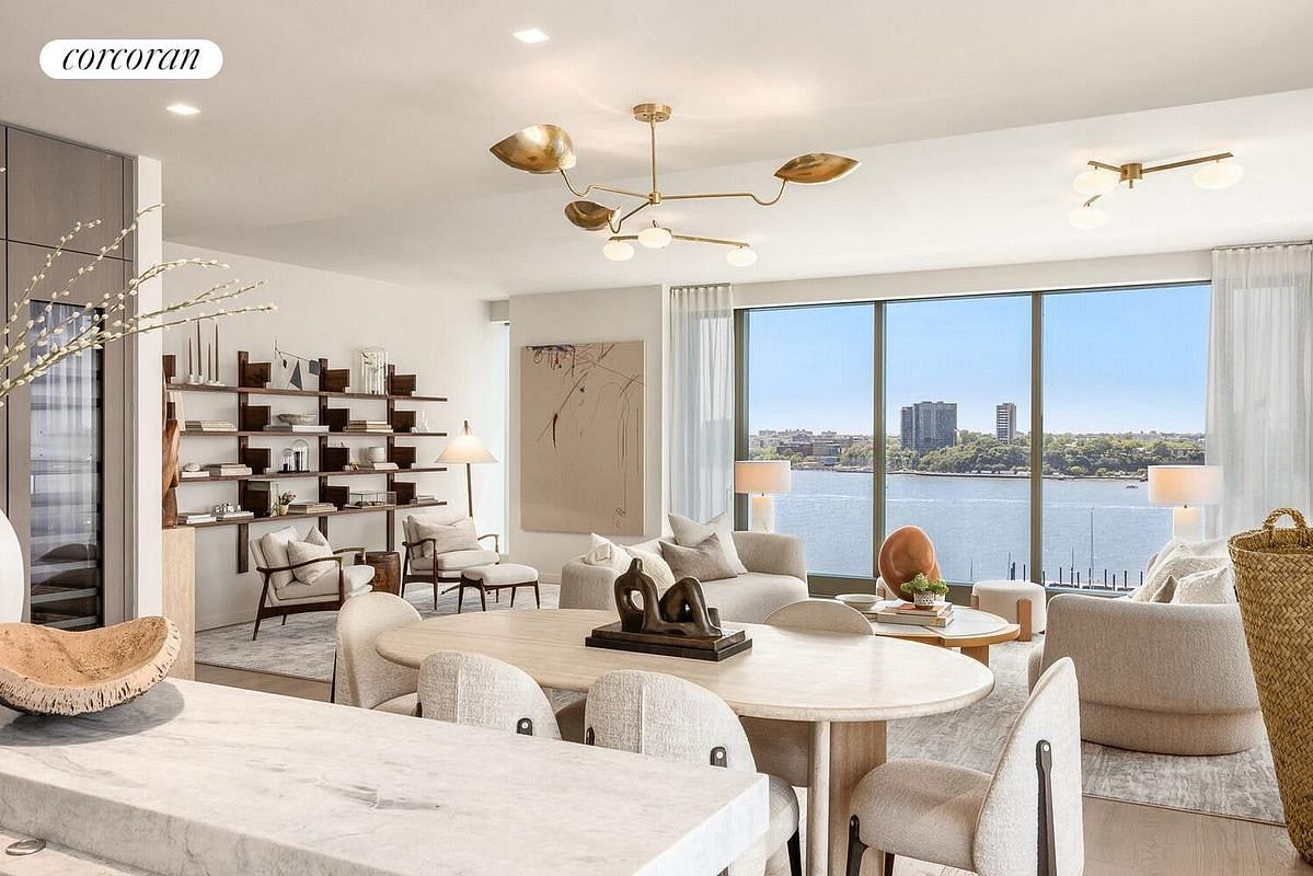 West 20C at One High Line is a 2,770 SF four-bedroom and four-and-a-half-bathroom corner residence curated by Gabellini Sheppard Associates with north and west exposures. This remarkable home features northern and western exposure overlooking the Hudson River and receiving an abundance of natural light throughout the day.Residence 20C home boasts a generous great room and open kitchen custom designed by Bulthaup, complete with White Princess Quartzite countertops and backsplash, a robust Gaggenau appliance package and stainless-steel fixtures by CEA Design.