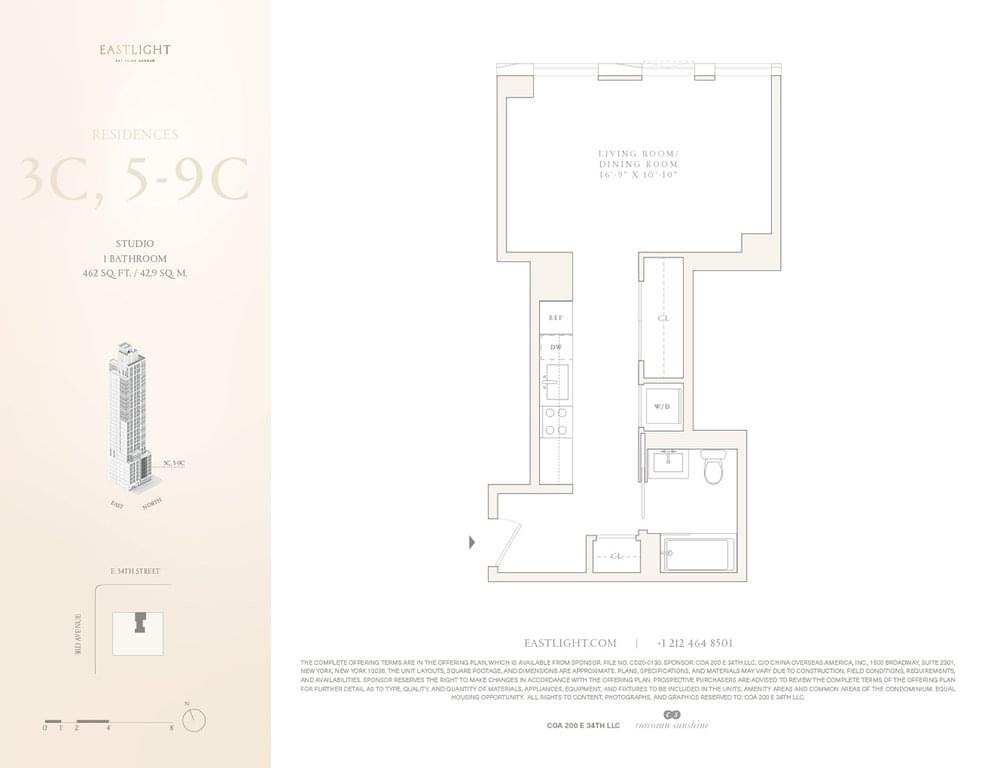 Exclusive Sales and Marketing Agent: Corcoran Sunshine Marketing Group. The complete offering terms are in an offering plan available from Sponsor. File No. CD20-0130. Sponsor: COA 200 E 34th LLC. Sponsor: COA 200 E 34th LLC, c/o China Overseas America, Inc., 1500 Broadway, Suite 2301, New York, New York 10036. Equal housing opportunity.
