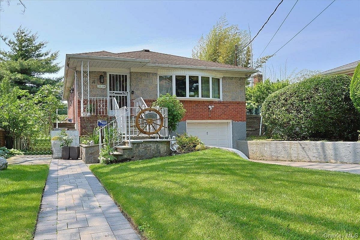 LITTLE NECK HILLS HIGH RANCH CIRCA 1960, ENDLESS OPPORTUNITIES. Oversized lot of 42 x 130 WHICH OFFERS PRIVACY. Upper level has two bedrooms plus MASTER SUITE WITH NEW BATH AND WALK-IN CLOSET. There is a full NEW guest bath for the other two bedrooms and a fully loaded designer kitchen with all the necessary treatments, including granite counters and flooring. The living room has a large bay window. All the windows in the home are new as well as a new roof with cutter screens. Top floor is loaded with beautiful hardwood flooring. The lower level is for easy living with access to rear from a new patio door. There is a laundry area, two types of heating, central ac, alarm, sprinklers, inside entrance from the attached garage. The lush gardens offer many types of fruit trees and mature shrubbery plus bonus area for a vegetable garden. Great entertainment area on an oversized slate patio. The grounds have running water and electricity, as well as outdoor lighting. Don't miss out on this home. Near All. Long Island RR Port Washington Branch, Little Neck Station.