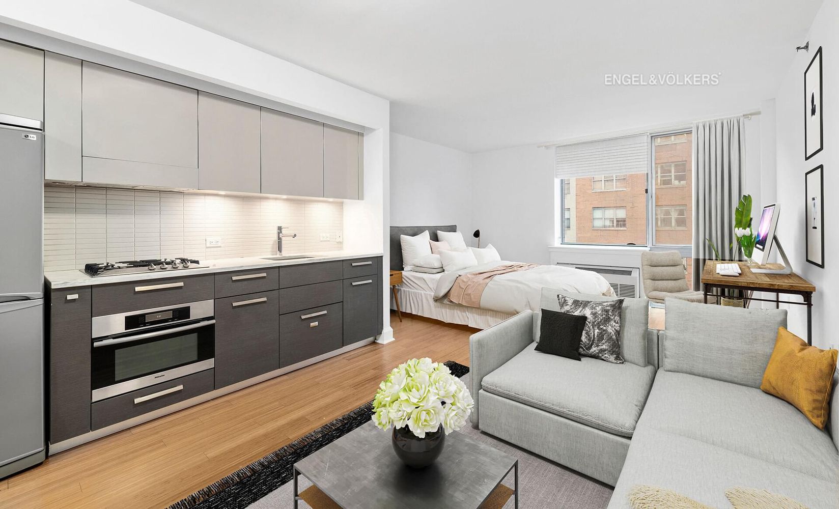This recently updated studio apartment faces south and receives tremendous direct sun light. 5BS features an open kitchen with marble counters, a Miele four-burner gas stovetop, Bosch dishwasher, LG refrigerator and your own FULL SIZED Bosch washer and dryer. Central A/C & heat, hardwood flooring throughout and floor to ceiling windows. An oversized, walk-in closet with custom shelving and storage system make this pristine apartment the ideal choice.