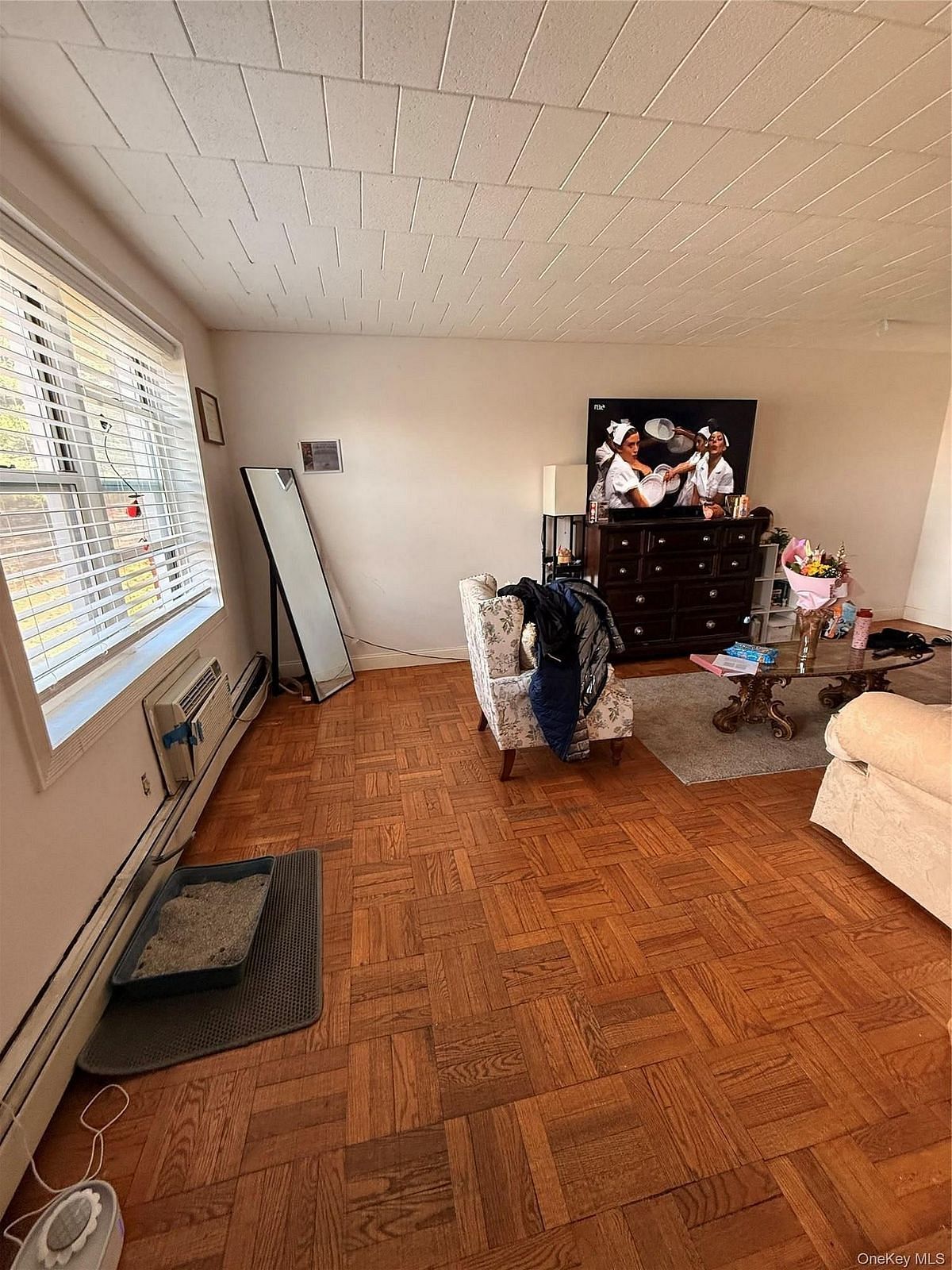 This beautifully maintained unit features gleaming parquet hardwood floors throughout, recently polished to perfection, complemented by sophisticated designer tile flooring in the entry foyer, kitchen, and bathroom.