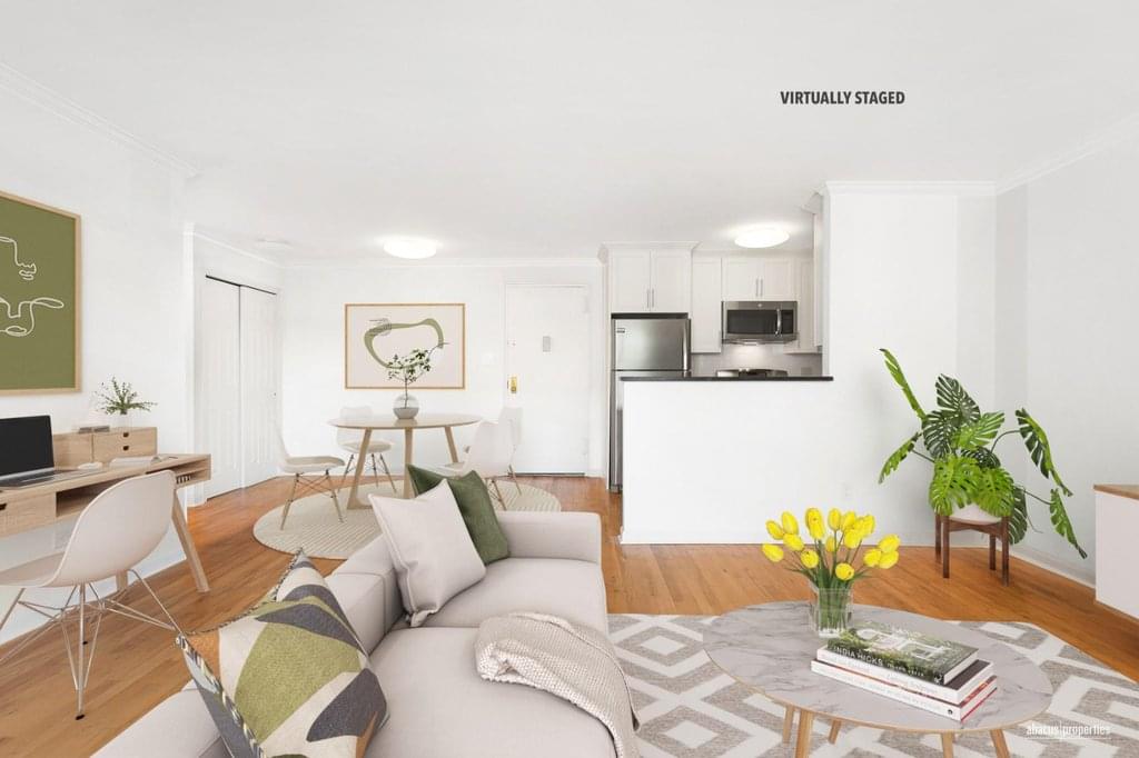 Do not miss this one! - This spacious 1 bedroom is bright & sunny with 2 exposures, West & South- and is located on the 3rd floor of this well maintained Kesington Coop. The large square living room leaves plenty of room for an office and there is a separate dining area. The updated open kitchen has white cabinetry and plenty of granite counter space to cook. There are stainless appliances including a dishwasher and microwave. The large bedroom fits a king and so much more and is perfectly separated from the living area by an updated bathroom and five closets including a walk-in. There are sleeve new AC units in each room to not take away from the window space, and hardwood floors throughout. The maintenance is a low $657. This listing has been Virtually Staged with the original photos following each staged one. This unit is in excellent condition.