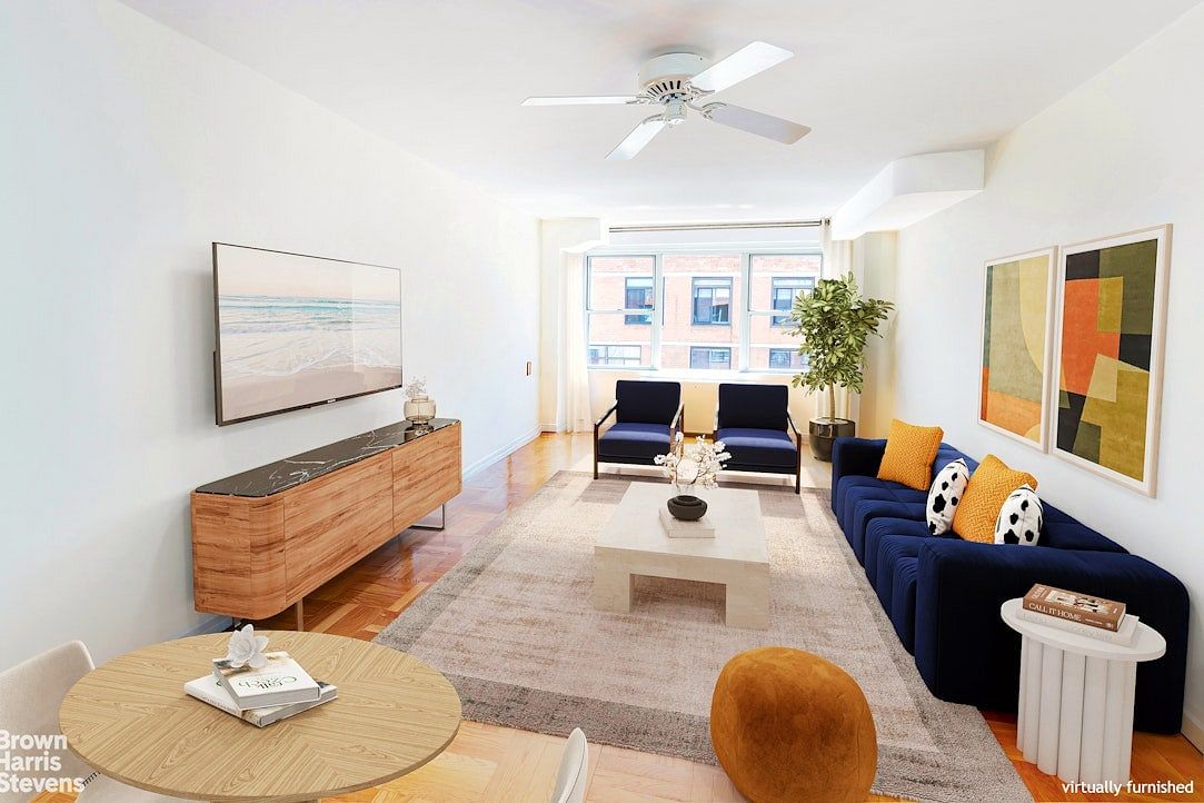 Full of gorgeous natural light, this incredibly inviting, move-in-ready 1-bedroom residence boasts hardwood floors in immaculate repair, central heat and A/C included in your common charges, excellent closet space, recessed lighting, and a tastefully updated bathroom featuring new tilework, a Robern medicine cabinet, and three long towel racks. The home's meticulously renovated, expanded kitchen boasts beautiful custom cabinetry with premium Jado chrome handles, sleek stainless steel countertops, lovely backsplash, pantry, and all stainless steel appliances including a Bosch dishwasher and LG range with range hood. Just bring your toothbrush!!