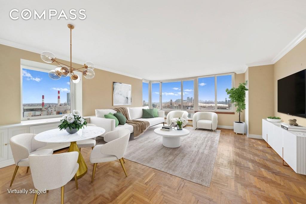 Experience the epitome of luxury living at its finest in this glorious 2-bedroom, 2-bathroom corner unit which is located on a high floor at The Belaire Condominium. This apartment offers panoramic views of the East River, bridges, and Manhattan skyline through large windows and sun-drenched rooms facing north, south, and east. The spacious living room is perfect for both living and entertaining, and the primary bedroom features an en-suite bathroom and a walk-in closet. The second bedroom offers a flexible space either as a bedroom or an office. A second bathroom allows easy access for guests.