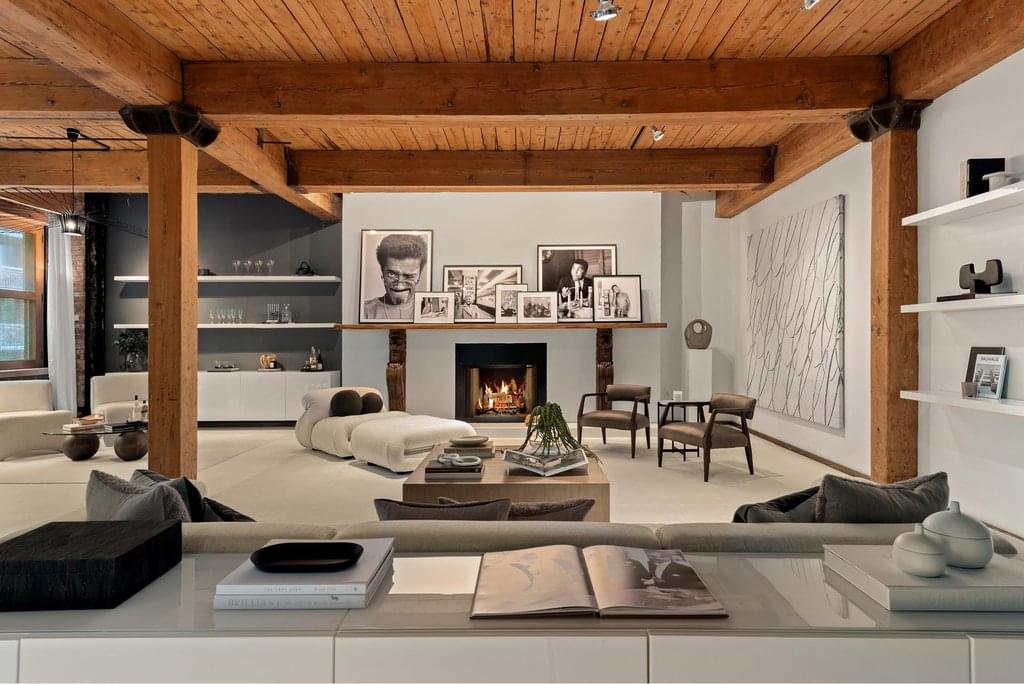 Perched on the serene side of the building, this extraordinary residence, currently staged as an immense 3 bedroom, features an awe-inspiring great room with original beamed ceilings, oversized windows, wood-burning fireplace and an immense footprint for gracious entertaining, with plenty of wall space for your art. Dramatic oversized bedrooms enjoy pin-drop quiet, excellent natural light and plenty of customized closets, while the romantic primary suite, situated at the end of a private hall offers tons of bright open space, amazing closets and a stunning spa-like bath right out of Italy, this sublime windowed retreat features two elegant sinks, an enormous soaking tub, large separate shower and tons of hidden storage. The secondary bedroom offers direct views onto the Highline and has space for a desk, separate seating area or reading nook, while the dreamy adjacent den complete with wet bar, butler's pantry and wine fridge, could easily be utilized as a 3rd flex bedroom, formal dining room, library or home office. As well, the wet bar can convert to a 3rd full bathroom, with approval, whilst keeping the ambiance of luxury loft living.