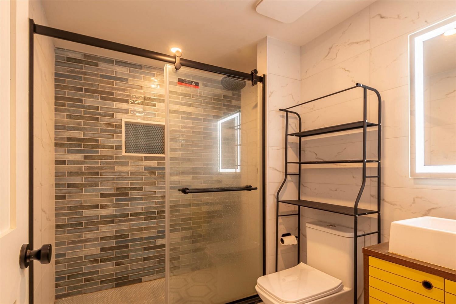 Downstairs, the newly finished basement includes a full bath and offers abundant space for a recreation area, home office, or guest suite. The home has 2 zones for the central air conditioning and two heat zones. Recent upgrades include a new Andersen sliding door leading to the deck, a 4-year-old gas furnace hot water heater, and a roof that’s less than 9 years old.