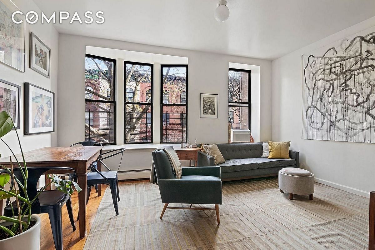 The duplex spans the parlor and garden levels and is defined by volume, light, and flow. Soaring ceilings and oversized bay windows crown the parlor floor, while the homes generous width allows for an expansive living room, open kitchen, and a quiet home office tucked to the rear. Below, the garden level reveals a private retreat with a large primary bedroom, guest room, private cellar access, and seamless entry to a sun-filled, south-facing garden. A private entrance and welcoming foyer complete this elegant residence.