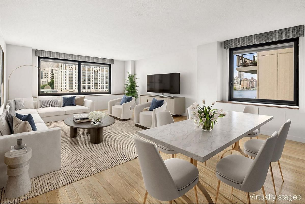 Welcome to Apartment 622 at Rivercross, a gem in one of the most coveted buildings on Roosevelt Island. This spacious 1-bedroom, 1.5-bath apartment offers a layout designed for comfort and style. Sunlight floods through the large windows, creating a warm and inviting atmosphere throughout the space. Both the living room and bedroom provide west-facing incredible views of the East River and Manhattan. The generous en-suite bedroom features ample closets, providing plenty of storage for all your needs.