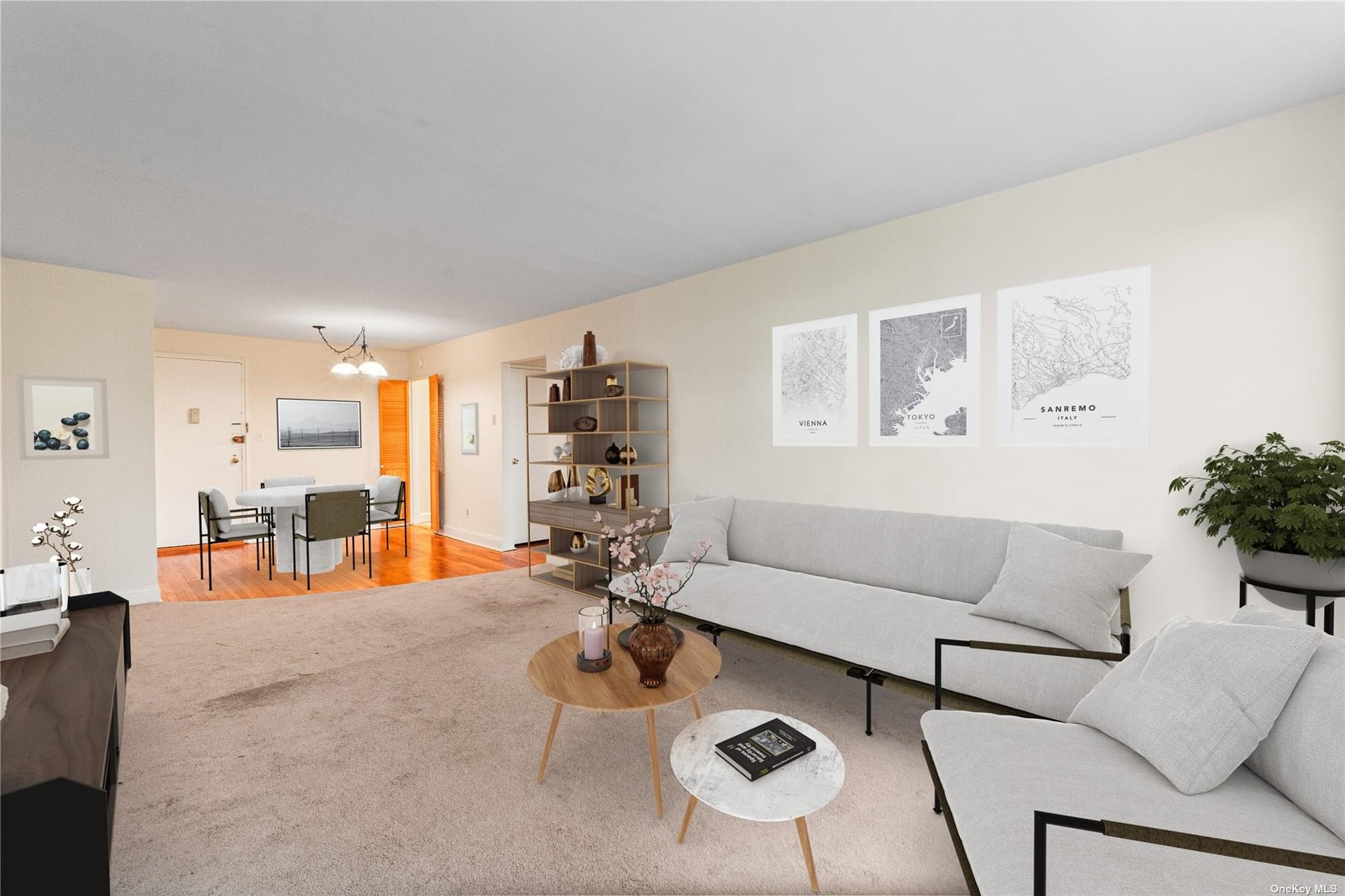 Welcome to this beautiful sun lit apartment situated on the third floor and facing the rear of the building. Super quiet and updated, this unit offers ample closet space, a private kitchen area with gas cooking, dining area, formal living room, a full bath and a large bedroom with a double closet. This development is very special and it is Little Necks best kept secret! It is in close proximity to shops and restaurants, transportation, the highway, Northern Boulevard and more. It has a large outdoor in-ground pool, a beautiful court yard with specimen plantings, 24 hour security, a dedicated parking space, a gym and a common laundry room.