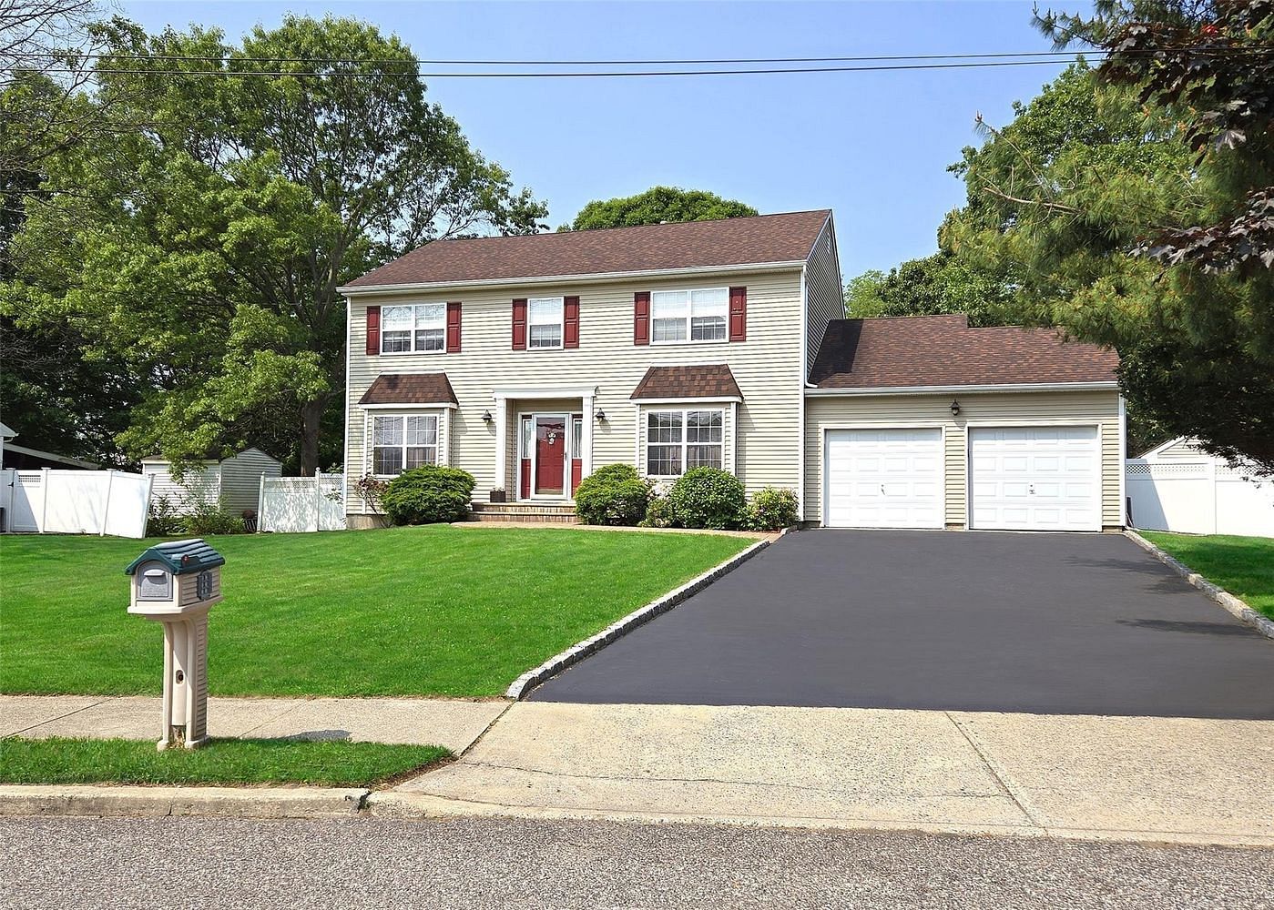 Proudly Presenting - 54 Gatelot Avenue in Lake Ronkonkoma - Built in 1998 - Boasts Large Rooms Through-out! 4 Bedroom Colonial, 2.5 Baths, Foyer, Hi-Hats, Skylights, Large Closet Space, Formal Living Room, Dining Room, Eat in Kitchen with Pantry, Den/Family Room. Hardwood Floors, In Ground Sprinklers, 2 Car Garage, Gas Heating, Central Air, Updated Cesspool, Full Basement 3/4 Finished, Solar Panels are OWNED, One Year Old Heating and Cooling System- True Taxes: 13,747.12 - Sachem Schools, Close to Long Island RR, Long Island Expressway, Shopping and more!