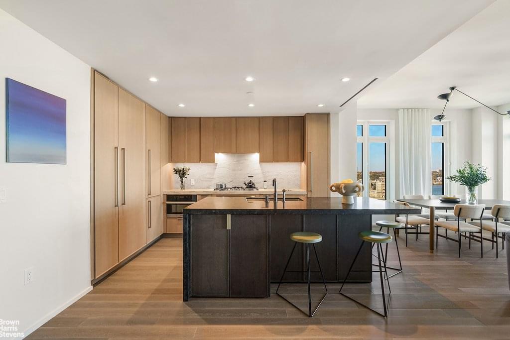Vandewater's interior design speaks to an old school design approach and showcases the beauty of the materials in a new and thoughtful way - oversized, high performance casement windows, tall ceilings, and European white oak floors. Elegant kitchens offer honed Perla Venata kitchen counters, chef caliber Miele appliances and custom, craftsman inspired oak cabinetry with pewter hardware. Primary bathrooms are outfitted with honed Windsor Cream marble, soaking tub, large shower with frameless glass enclosure, pewter fixtures, and custom oak and travertine vanities. All homes have the latest hvac technology from Climatemaster, laundry equipment from Whirlpool or GE, and recessed LED lighting. All residences have remarkable light, garden views and dramatic city vistas from the top third of the building. Preserved views in every direction allow for virtually no obstructions past the 20th floor, providing views of the George Washington Bridge, Hudson River, Central Park, downtown Manhattan and beyond. Select residences have outdoor terraces.