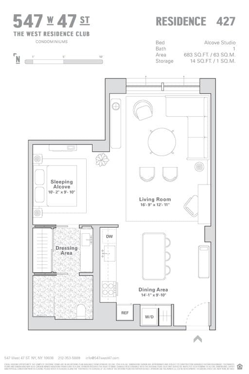 Envisioned by the innovative Dutch design team Concrete, 547 West 47th Street takes inspiration from classic New York City factory lofts with open layouts, natural oak flooring, high ceilings and oversized windows. Beyond the lush landscaping of the West 47th Street entrance, and the 24-hour attended lobby, residents can enjoy resort-like services and amenities of The West Residence Club. The long list of services and amenities includes: