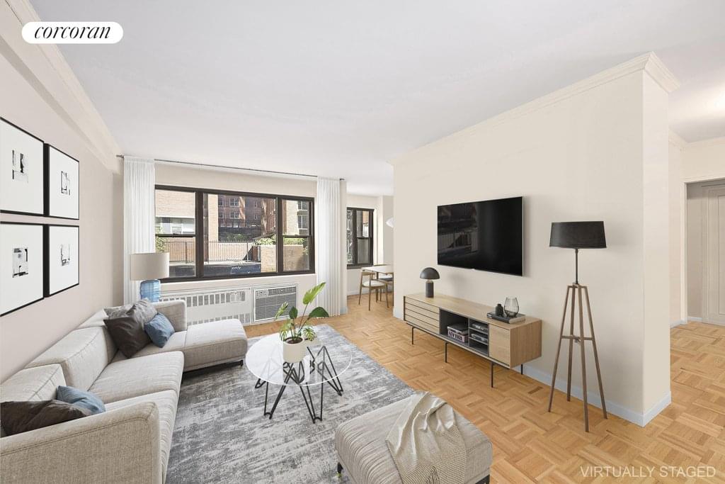 New to market at 55 East End Avenue, this spacious Junior 4 has excellent potential. Offering a flexible floorplan, apartment 2F has the versatility you are looking for in a home that can convert the dining L into a 2nd bedroom or home office area. You will be delighted at the generously proportioned room sizes and overall apartment flow. The galley kitchen and bathroom have been updated just off the proper foyer, including a coat closet. The primary bedroom is large enough to accommodate a king-size bed and a full suite of furniture. A double-sized closet completes the room. Closet space is in abundance with 4 large closets. This corner unit receives excellent light and looks onto a serene tree-lined enclave.