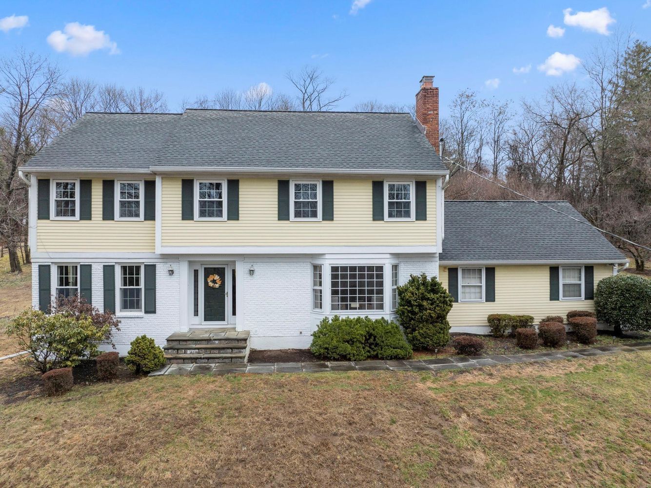 Classic center hall colonial with hilltop setting in desirable cul-de-sac neighborhood offering sewer/natural gas, steps from Grafflin Elem school and close to town and train., Set on gorgeous flat park-like acre surrounded by evergreens, towering trees and specimen plantings with stone walls.. Expansive Ipe deck (2012), patio, and screened porch with transom windows and high ceilings. 3 finished levels with gracious entry hall, turned side stair, family room with fireplace and bay windows (could be dining room), large open kitchen with SS Subzero/Thermador appliances, white cabinetry, granite counters, center island/skylights open to generous breakfast room with door to patio and deck, and door to screened porch with skylights and high ceilings. Formal dining room also opens to kitchen (could also be family room). 12 skylights flood the main floor of this this home with natural light. A separate main level laundry/mud room leads to the 2 car garage. The main floor is completed with a large front to back living room. The 2nd floor features oak floors throughout, primary bedroom with WIC and double closet/en-suite primary bath/skylight; 3 additional bedrooms and hall bath. The lower level offers a carpeted large playroom/rec room with room for pool/ping pong as well as media& gym area, storage/mechanical room with workbench area. Low taxes, move-in condition, great space and floorplan, top location, ready for your special touches. Probable pool site. 4 zone heat, 50 yr shingle Roof (2010), furnace & hw heater 2010, garage doors 2019. Gas line for BBQ grill.