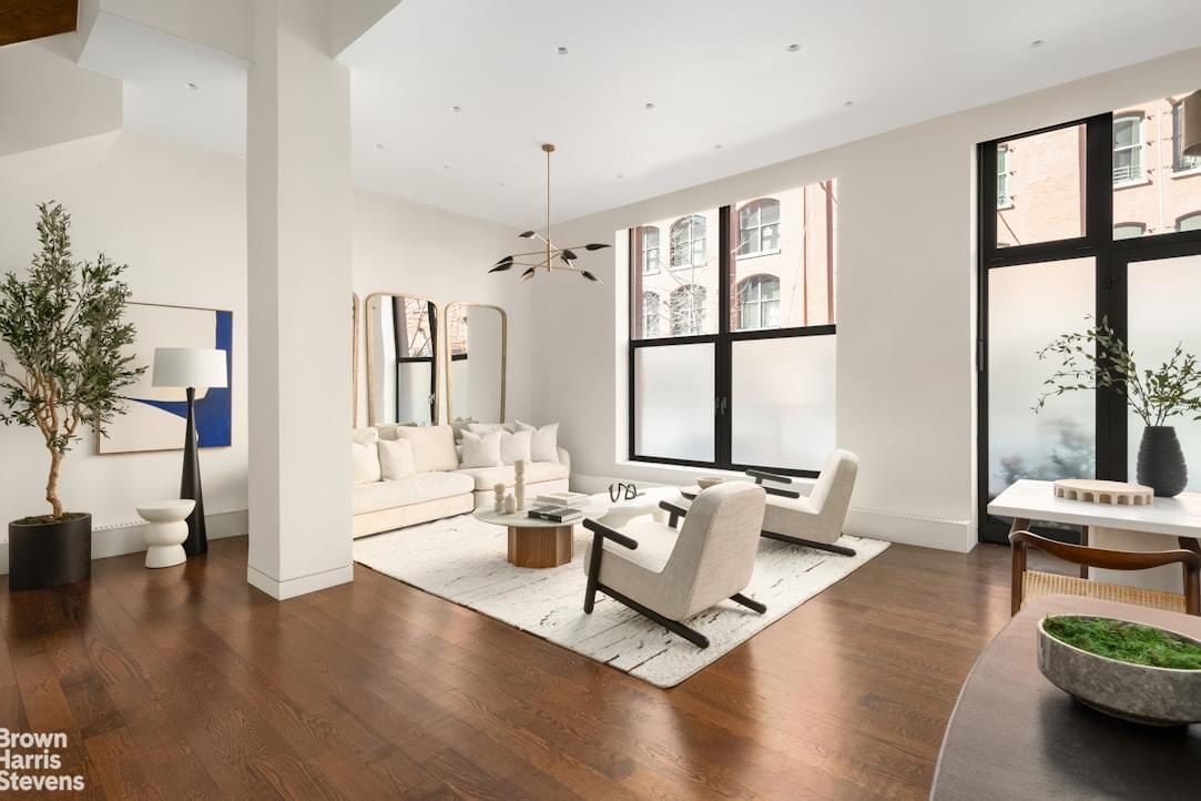 This expansive 3,300 SF townhouse offers a rare blend of privacy, space, and modern luxury in the heart of North Tribeca. With five bedrooms, five bathrooms, and a private 630 SF patio, the home is thoughtfully designed across three levels.