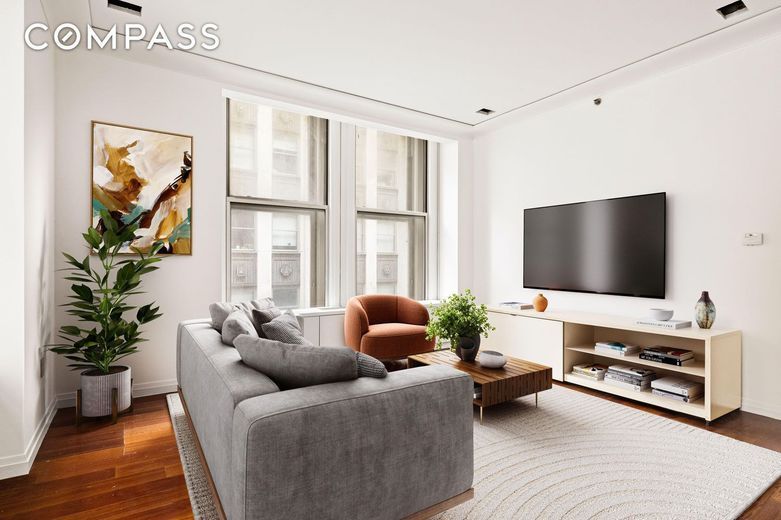 Welcome to 55 Wall Street, Apartment 540an extraordinary corner two-bedroom, two-and-a-half-bathroom residence in one of the worlds most iconic buildings. Set within a Classical Beaux-Arts masterpiece, this stunning home offers an unparalleled blend of historic grandeur and modern luxury.