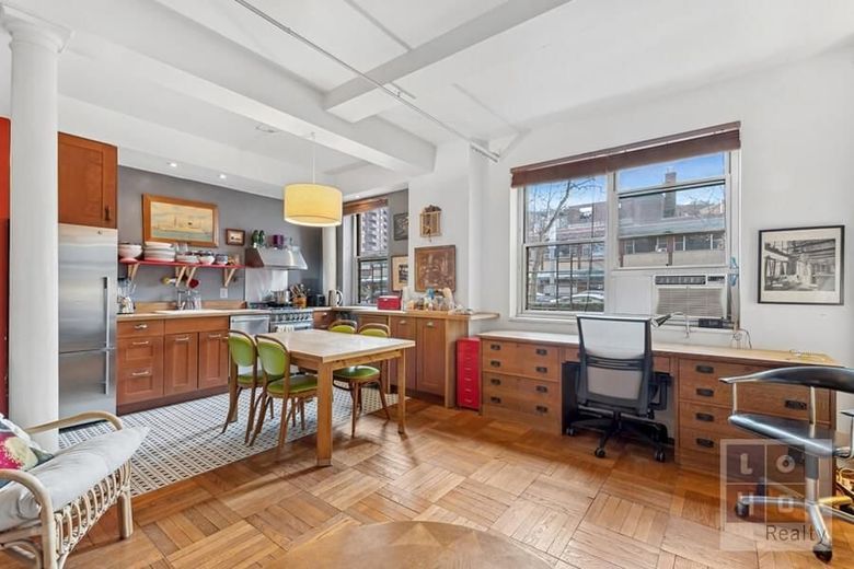 Sun-filled 1-bedroom apartment featuring southern views overlooking the unique charm of Grand Street! The highlight of this apartment is the open living/dining concept boasting an expansive space with a wall of windows allowing light to flood into the apartment. At the opposite end is a very large bedroom which can easily accommodate a king-sized bed, dresser, armoire, end tables & more! Other apartment features include a large foyer upon entry, windowed bath, 5 closets (consider opening the frame and combining the two side-by-side closets in the hallway to create one massive walk-in for incredible storage), hardwood parquet floors and Hillmans charming 9 ft. beamed ceilings throughout.