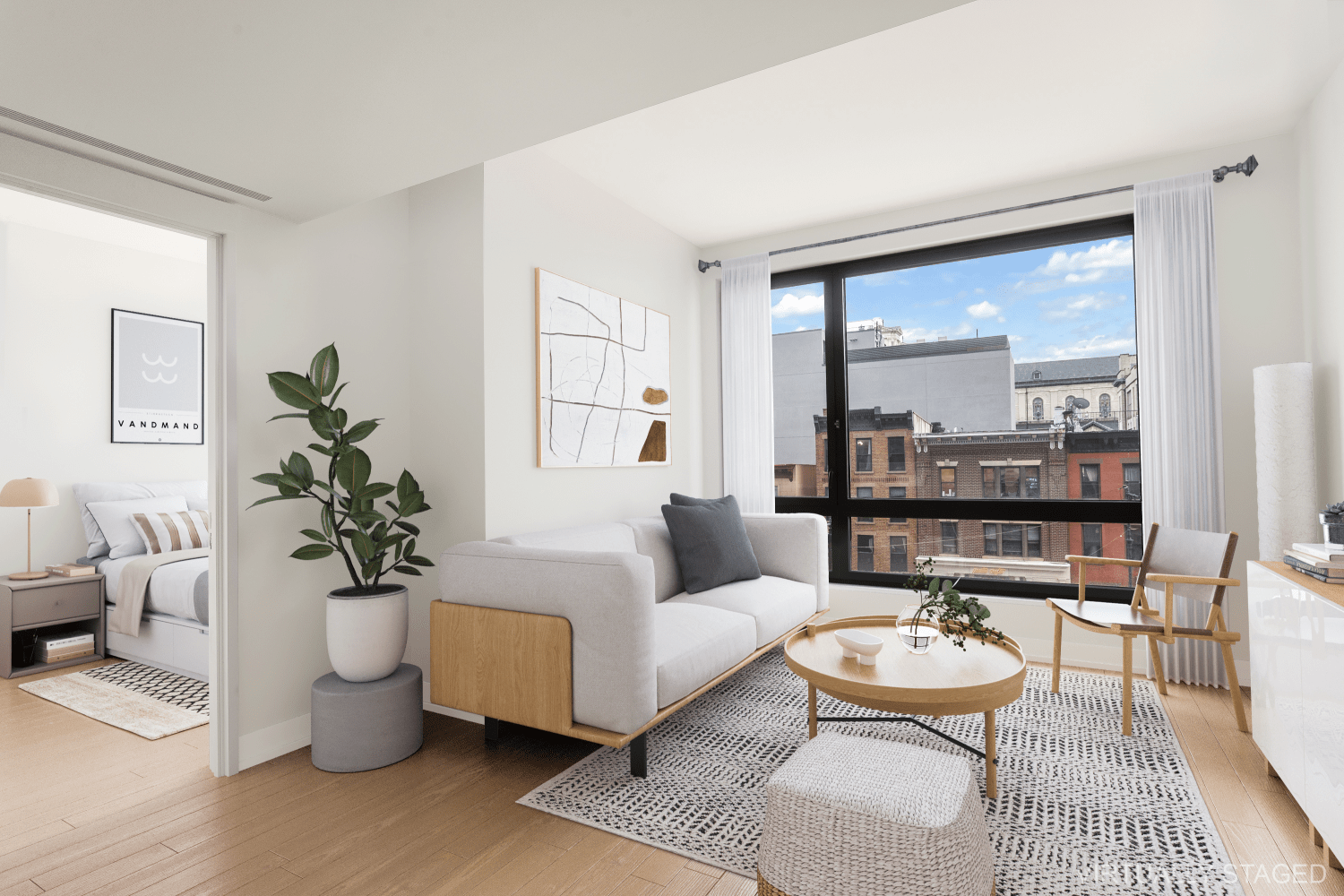Welcome to Unit 317 at 550 Vanderbilt, a stunning 1-bedroom, 1-bathroom residence offering 641 square feet of thoughtfully designed living space. Facing East, it overlooks the surrounding historical Brooklyn neighborhoods. The 10-foot ceilings and large windows allow for plenty of air and light, and wide plank wood floors highlight a palate of natural materials. The seamless kitchen features grey Italian lacquer cabinetry and is outfitted with a premium Miele appliance package, including a vented cooktop hood. In addition, a Bosch Washer & Dryer makes life easy.