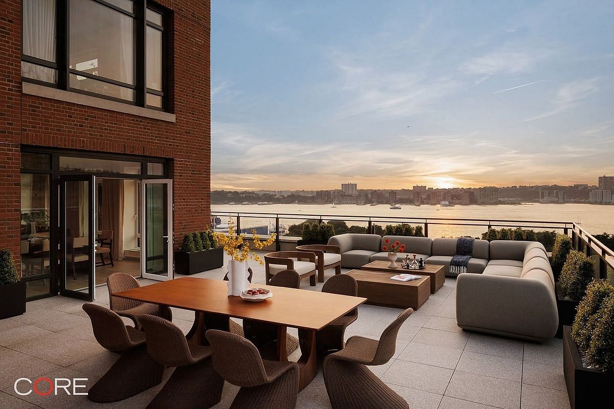 Residence 11AW is 4,089 SF with five bedrooms and five-and-a-half bathrooms. The 3,213 SF private terrace has an outdoor kitchen and unobstructed views of the Hudson River facing west and city skyline views facing north. The expansive, open-plan living and dining areas feature unobstructed views of the Hudson River, a 29-foot corner great room, a windowed eat-in kitchen with a custom Olson Kundig-designed Jackbox, warm wood flooring, floor-to-ceiling windows, and bay windows. The primary bedroom suite offers a fireplace and double walk-in closets.