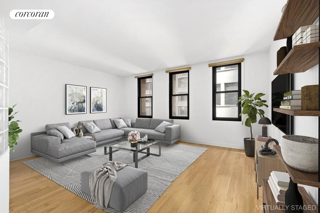 Price reduced to $550k for an immediate sale. Do not miss! #11G at 56 Pine Street is a lovely home of 775 total square feet with a separate kitchen and three extra large windows facing north. Big enough that this exact unit line has been converted to a superb Flex 2! See our proposed floorplan. Currently, the open layout is delineated by a handsome curved glass brick wall, allowing light to pass thru, while maintaining privacy and creating a proper separate sleeping quarters. Tastefully finished with a subway tile bath, central heating/AC, and solid oak hardwood floors throughout. The building is very special place to call home. Registered as a NYC Landmark, 56 Pine Street is widely known for its iconic terracotta and intricately carved stone facade. Inside, all the features you want in a full service condo; an attentive 24 hour staff, state of the art fitness center, movie screening room, resident lounge, all located in the event space, which can be reserved for parties and entertaining. Located in the heart of the Financial District, just across the street from the subway, Whole Foods just a block away, the Tin Building and the newly refreshed Seaport. Give this neighborhood another look if you haven't already! A great fit for investors and first time buyers! Please note: $446.94 special monthly assessment through December 31, 2023 for Local Law 11 facade work applies - This is paid by seller.