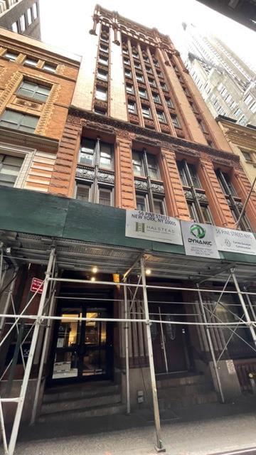 Corner high floor unit, cozy studio is divided with dry wall for bedroom privacy. Very bright! It also features a kitchen with granite countertops. Designed by Oscar Wirz in the Romanesque-revival style, 56 Pine St. was completed in 1894 and was converted into apartments in 2005. Originally called the Wallace Building after its developer, James Wallace, the building was named a city landmark in 1997. The building is most notable for its iconic facade of stone, brick, and terra cotta and with inset, arching windows. With 90 units on 16 stories, 56 Pine St. was one of the tallest buildings in lower Manhattan when it was first built and was one of the citys first skyscrapers. Public transport is a short distance from the building, and its central Financial District location marks it close to eateries, retailers, banks as well as local parks and South St market is a couple blocks away. All utilities are included in the maintenance.