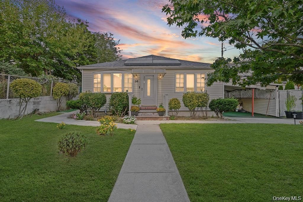 Fully Renovated Ranch House in Elmont, featuring 3 Bedrooms, 1 Full Bath, Living Room, Formal Dining, updated Kitchen with brand new appliances, a big closet on 1st fl, a full finished basement with separate entrance and a Bath, and a long driveway can fit up to 4 cars. 1-year-old roof, paid off Solar panel(only paying $108/month). Move in Ready! Walking distance to school, UBS Arena, close to Belmont park village and all other community amenities.