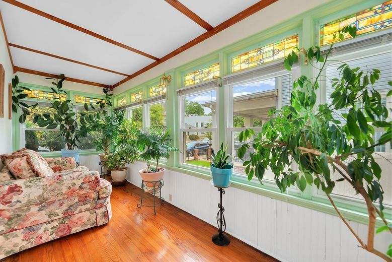 From the moment you arrive, you'll be enchanted by the home's early 20th-century charm. Relax on the inviting front porch and watch time go by, or step inside and be greeted by grand, airy rooms bathed in natural light from oversized windows. Original parquet floors flow throughout the home, and the formal dining room proudly features a freehand Al Fresco mural created by a previous owner. And, the kitchen offers a cozy breakfast nook, ideal for morning coffee gatherings.