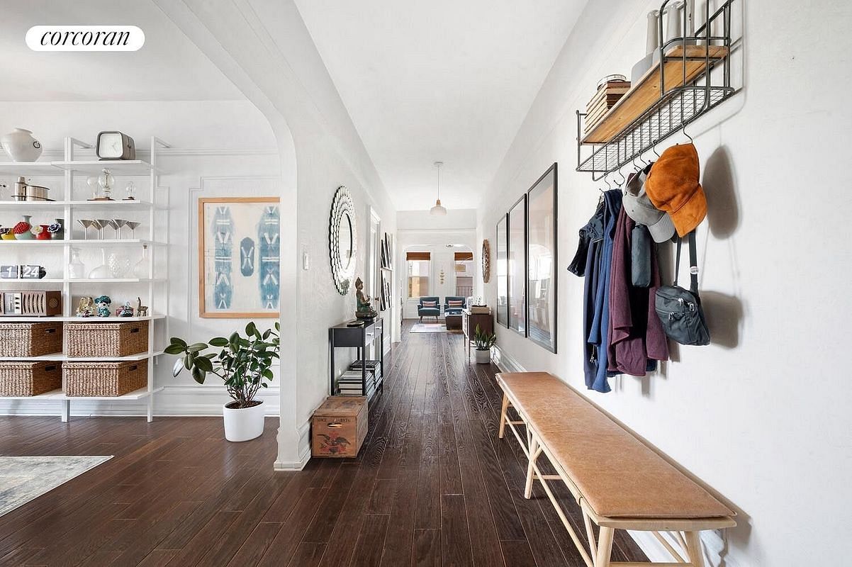Bright, expansive, and rich in pre-war charm, this coveted C-line corner six-room residence is a rare offering, combining scale, light, and exceptional value. Spanning approximately 1,500 square feet, this three-bedroom home boasts 13 oversized windows, soaring 9-foot ceilings, and south and west exposures that flood the apartment with natural light throughout the day - including a spectacular, unobstructed southern view down Broadway. A gracious 31-foot grand foyer and gallery creates an impressive arrival and an ideal setting for art collectors, setting the tone for elegant living and effortless entertaining. The thoughtfully designed layout includes a spacious eat-in kitchen, a well appointed full bathroom with original details and upgrades as well as a flexible half bath that can easily be converted into a full. Original pre-war details abound-picture rails, picture frame moldings, crown moldings, baseboards, brass hardware, and a functional transom-perfectly complemented by rich oak floors throughout. Set within the historic Woodrow Court , built between 1917 and 1918 and converted to a cooperative in the early 1920s, this full-service building is renowned for its financial stability and strong sense of community. The recently renovated lobby preserves its original architectural character while introducing modern updates, including new mailboxes and a package room. Residents enjoy a full suite of amenities: 24/7 doorman, live-in superintendent, monitored security cameras, high-speed community Wi-Fi throughout common areas, a large community room, fitness center, private storage, laundry facilities, and a beautifully landscaped roof garden. The building also features a renovated passenger elevator, separate service elevator, and a fully accessible (zero-stair) entrance. Ideally located in the heart of Washington Heights , the building offers convenient access to the A, C, and 1 subway lines - with an express commute to Columbus Circle in under 20 minutes. Enjoy close proximity to Fort Tryon Park , Riverside Park , and Highbridge Park , along with cultural landmarks like the United Palace . Surrounded by a vibrant dining and cultural scene, this is pre-war living at its finest and a rare opportunity to own one of the building's most sought-after lines.