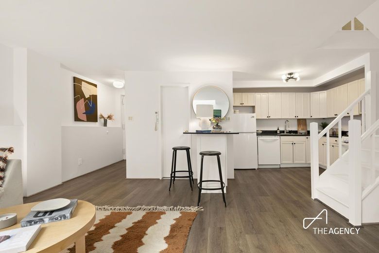 Upstairs, two generous bedrooms provide a quiet retreat from the citys energy, complemented by a full bath.