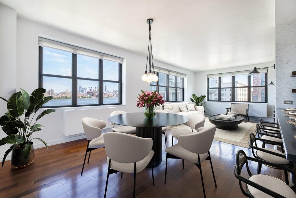 This large 2-Bedroom home is one of the best in this timeless residence. Positioned one floor below the penthouse, at the Northwest corner of the building, 5C offers spectacular views of Manhattan & the East River. The interior is brightly sunlit from dusk till dawn and boasts a spacious living/dining area that will comfortably fit an 8 person dining table, large L shaped couch with side chairs, bar stools at the kitchen island, all with room to move. The interior features 9 foot ceilings, first class finishes and appliances. The kitchen is outfitted with Bosch and Liebherr appliances, Blanco fixtures, marble backsplash, polished Caesarstone countertop, wenge and glass cabinetry. The bathrooms include a deep Zuma soaking tub and marble + glass shower including a built in contrasting marble bench. The home also includes a garbage disposal, washer/dryer and abundant closet space. Head up to the rooftop and dont miss the massive rooftop cabana with pavers, wooden fence, and a bbq grill with kitchenette. *Note the terrace comes at an additional cost. 58 Metropolitan offers a true Williamsburg lifestyle with its distinctive brick facade and 50 condo residences. Conveniently situated in the heart of Williamsburg, a short walk to the Domino Park, East River State Park, East River Ferry, and Bedford Avenue, 58 Metropolitan is unique in so many ways. In addition to its unobstructed, jaw-dropping views of Manhattan, it features a private Courtyard and Landscaped Garden, Common roof top terrace, a Lobby Lounge, Virtual Lobby Attendant, Bicycle room, Package Delivery storage, Refrigerated storage, Enclosed Private Parking, and a 15 year Tax abatement (5yrs left). 58 Met also boasts first rate shared amenities with awarding winning sister building, 80 Metropolitan. These include, a Swimming Pool, Fitness Center, Zen Garden, Yoga room, and Media Lounge with Kitchenette.