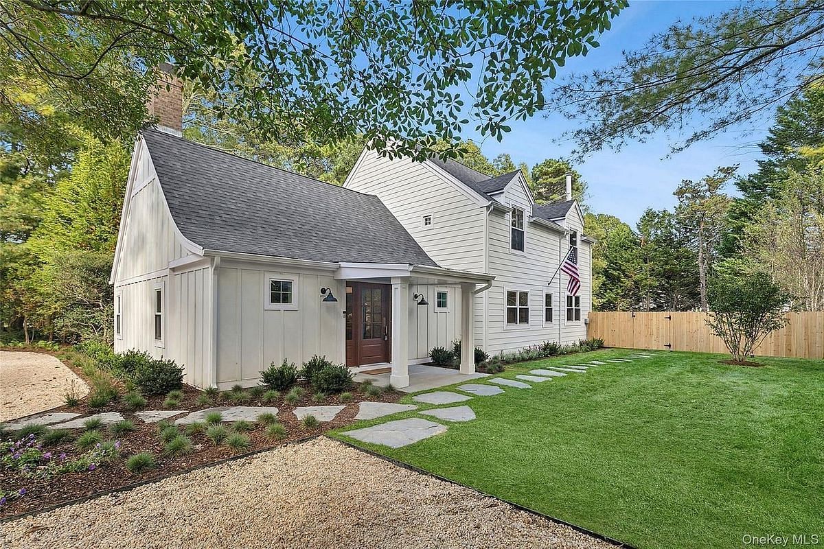 Located on a quiet lane in Wainscott, close to ocean beaches, shopping, cafes, Barry's Bootcamp, and the Wainscott Hampton Jitney stop, 6 East Gate offers a turnkey retreat, fresh from a full gut renovation that leverages the charm of this triple-mint 1920 home. Attention to detail is an understatement in this exquisitely furnished 4-bedroom, 3-bath home set on 0.46 acres of meticulously landscaped grounds. Every aspect has been thoughtfully designed, with a comprehensive renovation and addition completed in 2025. Enter the circular driveway and step inside through the front door, which opens to a vaulted living room with adjacent kitchen and dining area. The space is anchored by a crisp white living room with details that highlight the integrity of the structure and complement the modern design aesthetic. The guest's eyes are drawn through the space by an axial view through double slider doors, to the new heated pool and stunning outdoor entertaining area with bluestone patio. Off the kitchen, there is a first floor bedroom/den layered with charming proportions and a richly detailed full bathroom. Connected by a solarium-like hall that faces the pool and the meticulously landscaped yard, is a spacious library/media room with a vaulted ceiling that makes a perfect gathering place for friends & family. Upstairs, is the primary suite, complete with a spacious walk-in closet and a spa-like bathroom featuring a double vanity and generously sized shower. In addition, there are two other bedrooms and a detailed full bathroom. Outdoors, the property is designed for entertaining and year-round enjoyment. The lush landscaping, specimen trees, and seasonal plantings ensure the property is as beautiful in spring and fall as it is in high summer. With low property taxes, refined finishes, and a premier Wainscott location close to both beaches and town centers, 6 East Gate Road represents the perfect blend of history, design, and effortless Hamptons living.