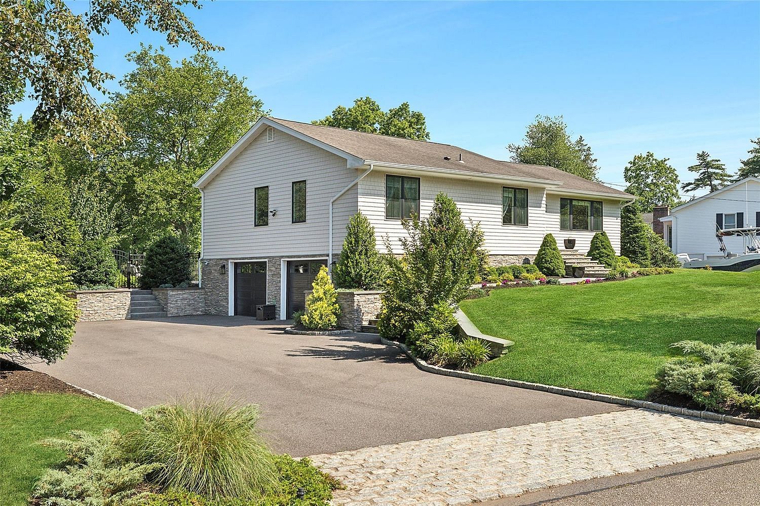 This stunning fully renovated 3-bedroom, 3-bathroom ranch offers the comfort of modern living with the quality and style of like-new construction, thanks to extensive renovations completed between 2018 and 2024. The home’s transformation began in 2018 with a full interior renovation, including new wide-plank hardwood floors, custom millwork, a designer kitchen featuring Cambrian quartz countertops, stainless steel appliances, a double oven, microwave drawer, and a full 200-amp electrical upgrade with sub-panel and recessed lighting. In 2020, the rear exterior was enhanced with a Fiberon composite deck and Marvin 9’ sliding door. A year later, in 2021, the front exterior received a full renovation with new cedar impression siding, Eldorado cultured stone, a new cesspool, and bluestone hardscape. In 2022, the basement was fully finished with a large office area with egress window, split-unit HVAC, rough plumbing, an ejector pump, and an additional 150-amp sub panel—offering flexible future expansion. The home was converted to natural gas in 2023 with a high-efficiency Navien tankless system, while the landscaping was regraded and upgraded with new sod, privacy hedges, a widened Belgium block driveway, and a smart 11-zone irrigation system with drip lines. Most recently in 2024, the home received a brand-new powder room, updated motion and soffit exterior lighting, and a new washer and dryer (dryer installed June 2024, washer 2023). The attached 2.5-car garage was insulated and heated, fitted with a separate thermostat, and updated with smart-enabled doors and openers. Inside, the home features an open-concept layout with 10” baseboards, custom crown molding, Marvin casement windows, solid wood shaker doors, and pull-down attic stairs for storage. The primary suite includes two walk-in closets and a spa-like en-suite bath with soaking tub, dual vanities, and a rain shower. Two additional bedrooms share a newly renovated Jack-and-Jill bathroom with a stall shower and ample closet space, including custom wood blinds. The home also features a gas fireplace, central A/C, forced hot air heat, a full-house water filtration and softening system, and an ADT security system. The fully fenced backyard offers a private oasis with arborvitaes, a stamped concrete patio, and a 6-seater hot tub—making this home a perfect blend of luxury, comfort, and modern efficiency.