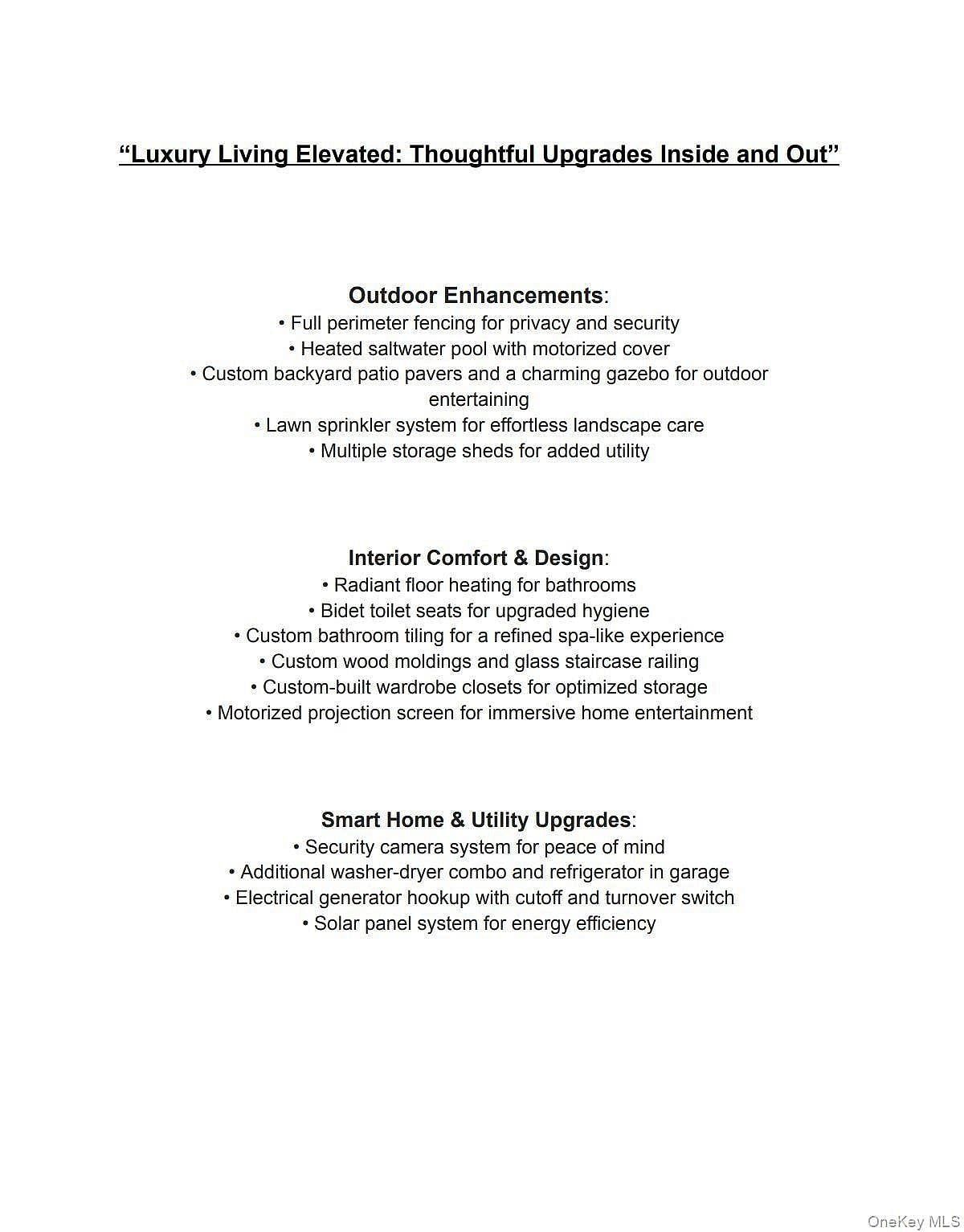 Located in the top-rated Jericho School District, this nearly new, custom-built Colonial sits on a quiet street in the desirable East Birchwood neighborhood and offers excellent feng shui. The home features 5 bedrooms and 5.5 bathrooms on a generous 9,882 sq. ft. lot, with low annual taxes of $18,720. Designed with both elegance and functionality in mind, the bright open floor plan features a chef's kitchen with Wolf and premium stainless-steel appliances, seamlessly connecting the main living and dining areas. The luxurious primary suite includes a spa-like bathroom and walk-in closet. For added convenience, the home is equipped with two refrigerators and two sets of washers and dryers. The 1,241 sq. ft. finished basement offers 9-foot ceilings, a separate entrance, recreation space, gym, and a full bathroom. Outdoors, cameras and security around the house, enjoy a heated saltwater pool with automatic cover, professional landscaping, and a full sprinkler system. Additional highlights include solar panels, whole-house water filtration, generator outlet setup, two-car garage, and a double-fenced yard for enhanced privacy. Perfectly positioned on a peaceful street with easy access to shopping and transportation, this exceptional residence combines luxury, comfort and positive energy. This home goes beyond typical new construction, offering thoughtfully selected upgrades and premium features that transform it into a truly complete dream home for its next owner.