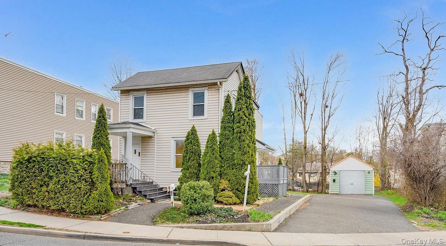 This Colonial-style home offers a great opportunity to enjoy suburban living just minutes from downtown White Plains. The main level features a welcoming living room that flows into the kitchen and adjoining dining area. Just off the kitchen, there is laundry area with washer and dryer hookups, a convenient half bathroom, and a small office/den. Upstairs, the home offers three bedrooms and a full bathroom. A separate entrance provides access to the basement, which includes utilities and additional storage space. Outside, the level backyard provides the perfect setting for outdoor gatherings, gardening, or simply enjoying time outside. The driveway accommodates multiple vehicles and leads to a detached one-car garage. Ideally located near downtown White Plains, you'll have easy access to shopping, dining, parks, and transportation. Close proximity to the White Plains train station and major highways including the I-287, Cross Westchester Expressway, making commuting to New York City both quick and convenient.