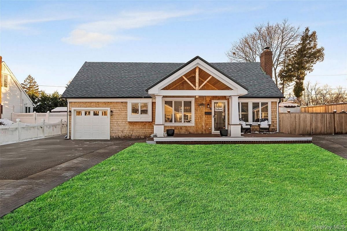 Welcome home to this charming 4-bedroom, 2-full-bath home in North Babylon, updated and spacious for both everyday living and entertaining. The first floor features beautiful hardwood floors, a bright living room with a cozy fireplace, and separate dining rooms that flow nicely for gatherings. The updated kitchen offers stainless steel appliances, granite countertops, and ample cabinet space. A first-floor bedroom and updated full bathroom provide added convenience, while the second level includes three additional bedrooms and another full bathroom. The full finished basement offers excellent additional living space, ideal for a home office, gym, or media room. Outside, enjoy a nicely sized, fully fenced yard with a paver patio perfect for outdoor entertaining. The home also features two driveways, making parking easy. Additional highlights include oil heat, central air conditioning, and sewers.