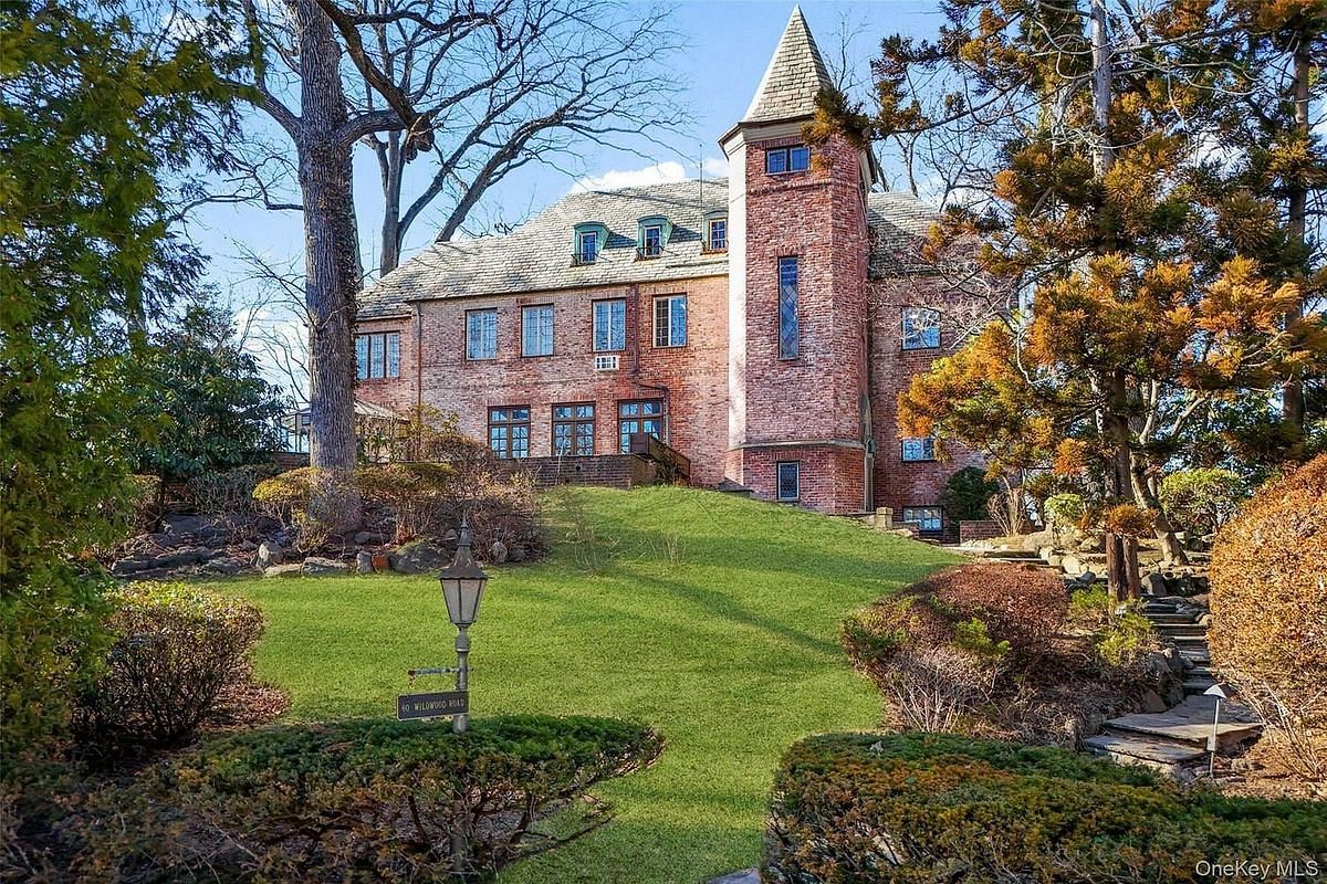 Like a castle on the hill. Embrace the spectacular beauty and incredible style of 60 Wildwood Road. This architectural gem is ideally located on a tree lined street a mere 0.8 miles from Larchmont Village, train station, restaurants, shops and the farmer's market. Enter the grand foyer and wow. As you enter the immense living room, you will be entranced. Be embraced by the amazing light streaming through the French doors open to a patio, an incredible fireplace and beautiful exposed beams. Continue on to the stunning solarium, a truly unique greenhouse and wonderful screened-in porch. Back to the entry foyer, we next enter a cozy library, perfect to cuddle up with your favorite book. We then continue to the huge, sun-drenched dining room. Imagine the parties and gatherings! Continue to the eat-in kitchen, perfectly outfitted and situated. From the kitchen, there is a set of stairs to the garage/driveway and a door to the outside to make unloading a breeze. Continue up the spectacular staircase lit by a spectacularly unique window - the style is unbeatable. The second floor delights. Enter the warm welcoming primary suite, complete with sitting room, walk-in closet, water view and primary en-suite bath. A lovely office space is adjacent to the primary sitting area. There are three additional generous bedrooms and two hall baths. Continue down the hall to a large flexible living space which could be a media room, a playroom, or just a space to hang out. We continue up to the third floor, with a large storage closet, a full bath, and a bedroom with tons of storage space. Two additional rooms complete the third floor. Down to the lower level, we find a light filled room, which could be a second family room or professional office with separate outdoor entrance. A powder room, finished storage and large two-car garage complete this level. And the outdoor is sure to delight - located on two lots, this home has almost an acre of property. It includes an additional taxable lot open all the way to Ridge Road. The plentiful outdoor patios and screened-in porch, the beautiful yard invite you to enjoy the outdoors. Come home to this masterpiece and all its timeless beauty.