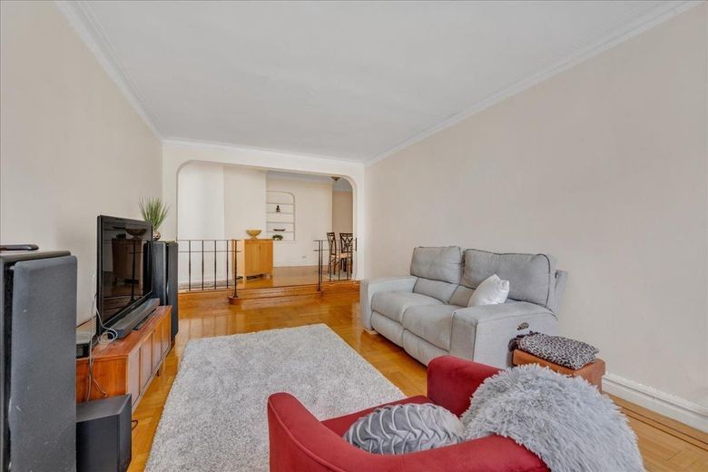 Beautiful Pre- War Built in 1937, designed by H. I Feldman an architect who designed 2,500 houses in New York Metropolitan area. He was particularly active on the Grand Concourse; his buildings are the Art-Deco style in the Bronx. Come and see the recently refurbished Mosaic Wall Muriel located in this Grand lobby with a spiral staircase, and two separate entrances. Located in the Pelham Parkway section is this beauty. Spacious one-bedroom with a large entry foyer, sunken living room with original wrought iron railings, and hardwood floors throughout. An extra-large bedroom fits king-size furniture and has room for more - a windowed eat-in kitchen with the original cabinet in excellent condition. The Manhattan express busses Bx10 (Morris Park Route) and Bx11 (White Plains Rd) into NYX, Subway IRT White Plains Rd line #2 and #5. the business section on White Plains Rd & Lydig Ave is a beehive of activity, with stores and many ethnic restaurants. Close to the Botanical Gardens, The Bronx Zoo, and conveniently located to the "Little Italy of the Bronx" Arthur Ave shopping district. Bike Room and Storage are available for a fee. No Dogs **Apartment recently painted**