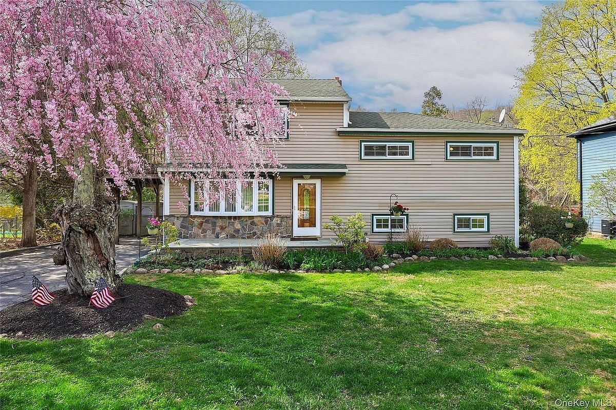 Welcome to Pleasantville! This beautifully maintained 5-bedroom, 2-bathroom home is set on a generous 0.35-acre lot and offers space, comfort, and exceptional value in a tranquil setting. Step into a light-filled living room featuring an oversized bay window, creating a warm and inviting atmosphere. The space flows seamlessly into a formal dining area, perfect for gatherings. Glass sliders open to a private deck—ideal for morning coffee or evening entertaining. The eat-in kitchen provides ample cabinetry and counter space, making it both functional and enjoyable. A cozy lower-level recreation room offers flexibility as a home office, or den. The lower level also features a walk-out basement with private laundry and direct access to a large paved patio. Upstairs, you will find five generously sized bedrooms, each with plenty of closet space. The primary bedroom features a private deck that doubles as the roof of a covered carport below. Outside, enjoy a beautifully manicured yard surrounded by mature trees, offering both privacy and charm. Conveniently located near schools, parks, and the train station with easy access to Manhattan, this home combines peaceful suburban living with commuter-friendly convenience.