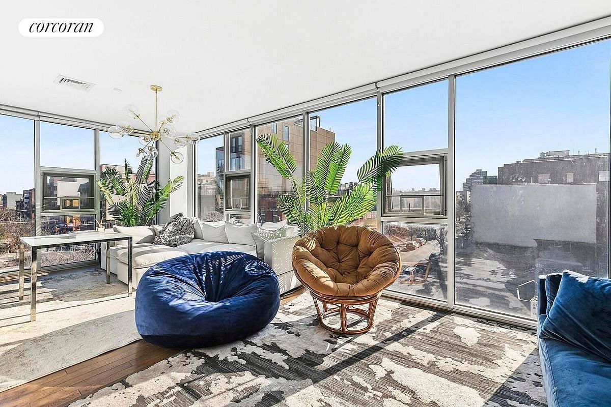 Modern sun filled corner 2 bedroom 2 full bathroom high floor (convertible 3 bedroom) condo overlooking the tree tops on the border of Clinton Hill and Bedford-Stuyvesant in Brooklyn. SHOWN BY APPOINTMENT ONLY.