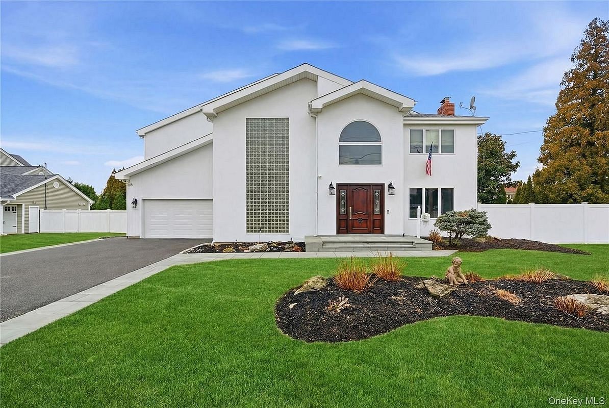 Welcome to this exceptional contemporary residence nestled in the coveted enclave of Biltmore Shores, one of Long Island's distinguished waterfront communities. Upon entry, soaring ceilings and a striking staircase set the tone, creating a grand impression. The family room offers a warm yet sophisticated space, featuring a marble gas burning fireplace with glass sliders that lead directly to the backyard, enhancing the home's effortless entertaining flow. A stunning marble bathroom on the main level adds both elegance and convenience. The home's culinary centerpiece is a show stopping gourmet eat-in kitchen, meticulously designed for beauty and function. A massive, seamless custom marble island anchors the space, complemented by top-of-the-line Wolf appliances, including a cooktop and double ovens, pot filler, Sub-Zero refrigerator, Bosch dishwasher, and a dedicated wine refrigerator—a true chef's dream. Surrounded by panoramic windows, the dining area offers serene views of the beautifully manicured grounds. New glass sliders open to the impeccably landscaped backyard, seamlessly merging indoor and outdoor living. Outdoors, a custom covered portico with a wood-burning fireplace provides an inviting, resort-like setting for year-round gatherings and al fresco evenings. Additional first floor features include a home office or 4th bedroom and main level laundry room.