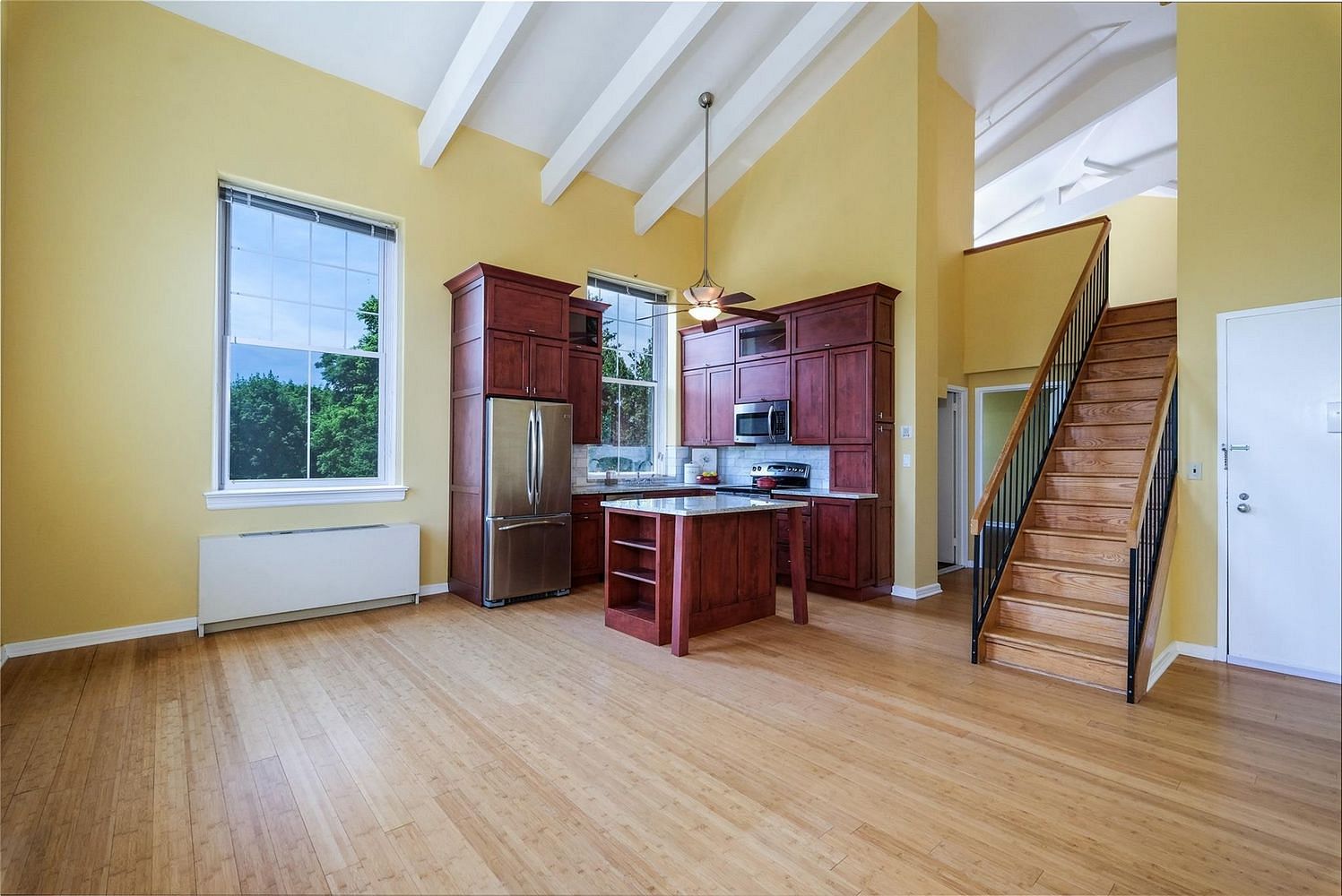 Named to the National Register of Historic Places, the Villa Loretto was built in 1928. Renovated in the late 1980s, Villa at the Woods took the best of the historic building's architecture and created unique condo units with modern updates, light filled spaces and vaulted ceilings. The centerpiece of your two-level end and corner unit is the custom kitchen with its hardwood cherry cabinetry, stainless appliances and granite counters. Enjoy a meal at the kitchen island while you visit with guests. Note the oversized windows that flood the space with natural light. This unique space also features two full modern baths, two bedrooms and in-unit laundry. Discover the some of the best lower Hudson Valley river town life in historic Peekskill with its many choices for recreation and dining. There's easy access to public transit, including Metro-North. Shopping and NYP Hudson Valley Hospital are nearby as well.
