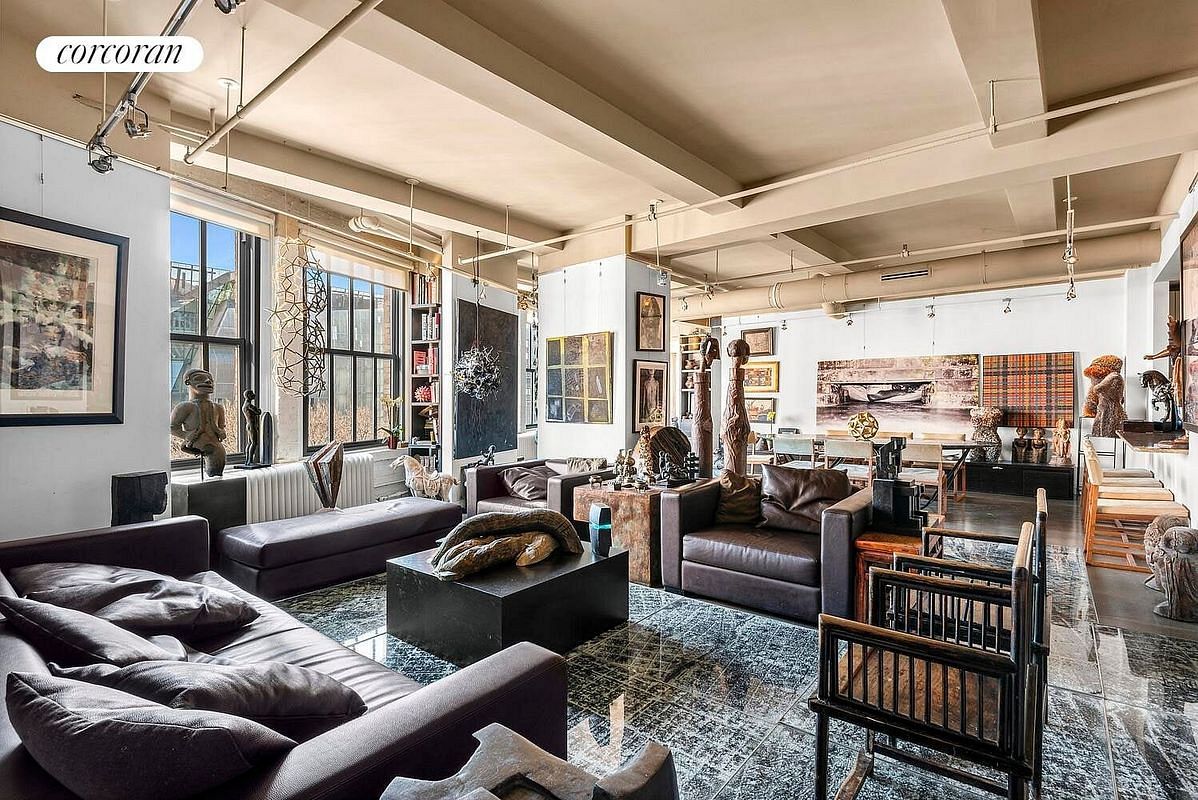 Situated in prime Noho with over 70 feet of eastern frontage overlooking Cooper Square, this 2,538-square-foot loft exudes a perfect blend of pre-war charm and industrial character. Every inch of the apartment is adorned with captivating art and decor, creating a truly unique living experience. Step into loft living at its finest, complete with classic features such as high 10'5" ceilings adorned with exposed beams, concrete flooring, and 10 oversized windows that flood the home with an abundance of natural light. The expansive great room layout provides a seamless open flow for entertaining, boasting a spacious living and dining area, a charming gallery nook, and an inviting open chef's kitchen. The well-proportioned master suite, located off the great room, offers a private bath and a generously sized walk-in closet.