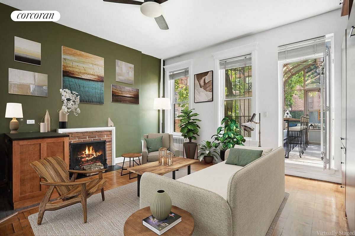 Located half a block from Central Park, this south-facing brownstone studio offers a rare blend of historic character and expansive private outdoor space.