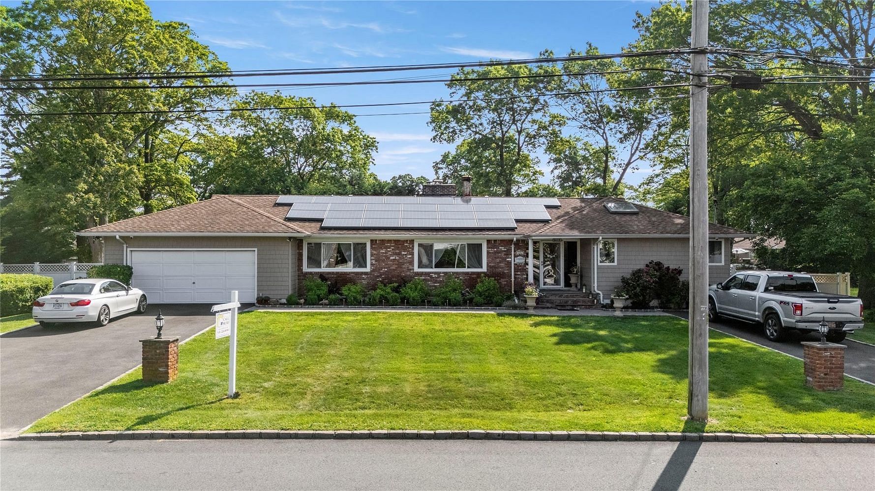 Gorgeous, totally renovated sprawling ranch - over 2500 Sq. Ft. As you enter this open floor plan layout- with custom stained hardwood floors that lead you through a spacious entertaining area that connecting with a chef's culinary kitchen with tons of cabinets, center island- three bedrooms, three baths, formal dining room, den, sitting area, entrance hall-all leading out to the panoramic views of the 14 x 36 in ground pool and majestic landscaping with private gardens, all nestled on a 150 x 145 peaceful property.