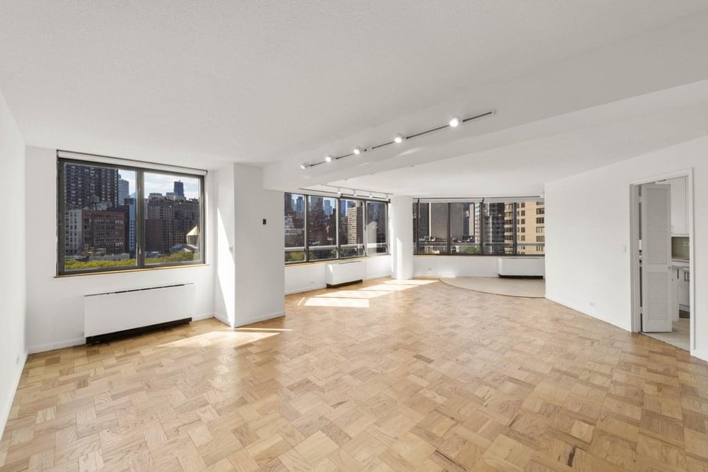 Bring your sunglasses when you visit this sun-soaked, combo unit at Manhattan Place, where every room features a wall of 6ft windows with glorious Western and Southern exposure! This fantastic space is currently configured as an oversized two bedroom with and an enormous primary suite- but can easily be converted to a three or even four bedroom unit. Keep the open, loft like layout, or bring your designer and your ideas to create the apartment of your dreams!