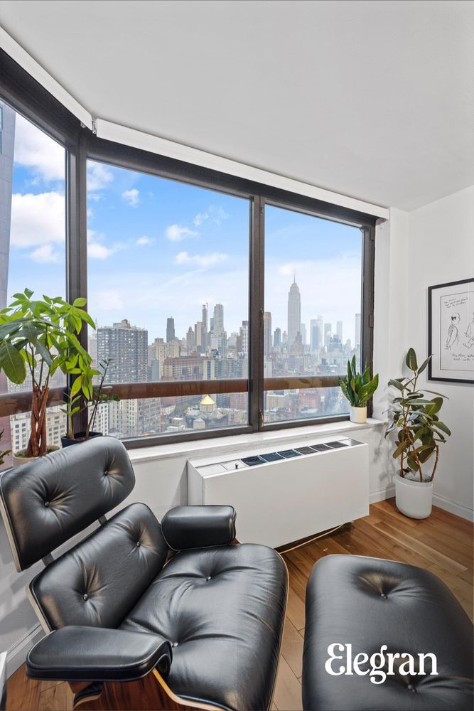 Allow me to present this impeccably renovated 1-bedroom, 1-bath apartment at the esteemed Manhattan Place Condominium, offering splendid city vistas, including the iconic Empire State Building.