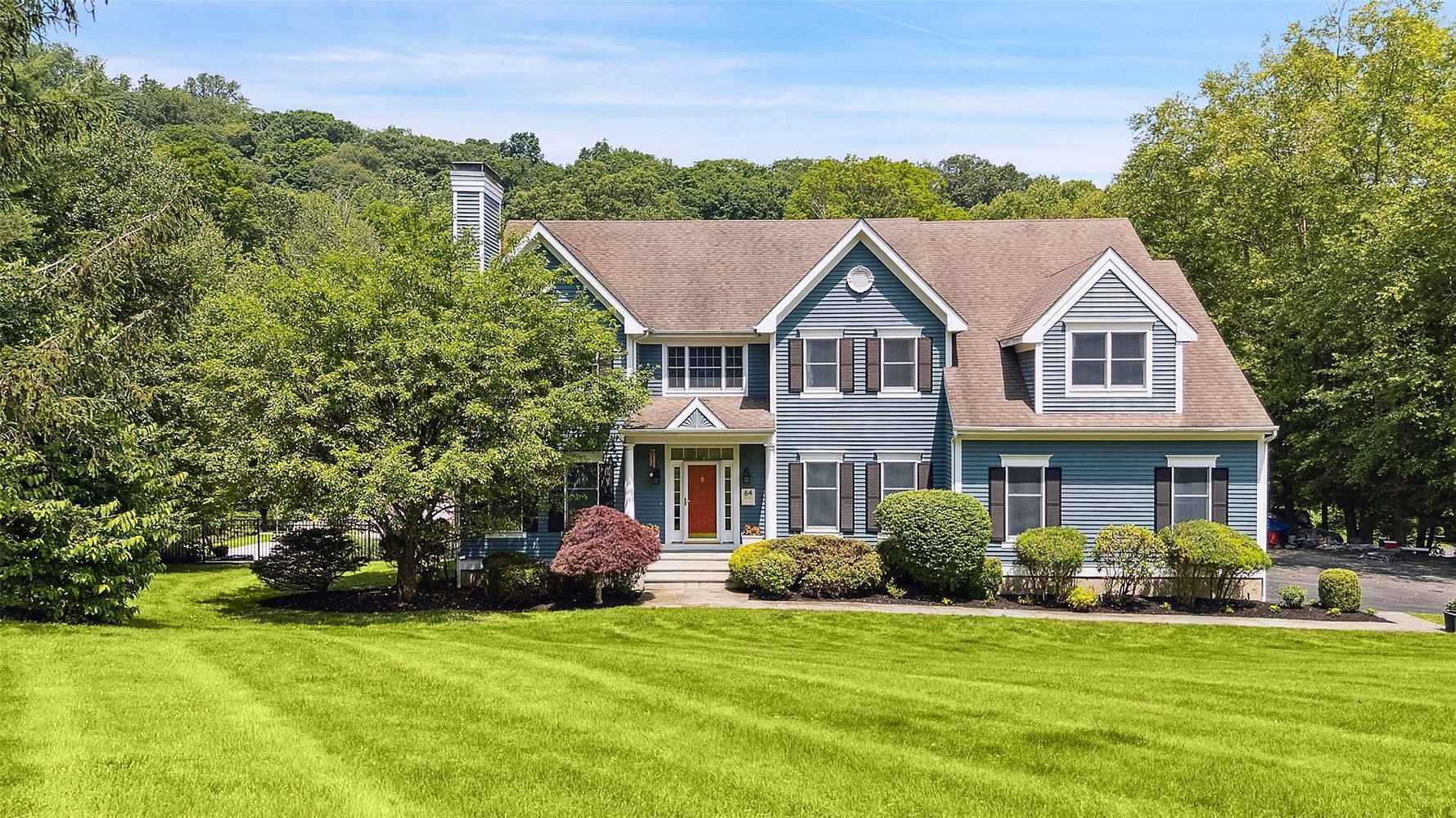 Gorgeous 5BR Country Colonial with private backyard featuring new salt water pool in well-established and highly sought-after Michelle Estates. A light-filled front foyer provides a welcoming modern entry with a view of many recent updates including a designer-inspired front office complete with custom built-in cabinetry as well as new architectural molding, richly-stained dark hardwood floors, light paint colors and stylish new chandeliers. This residence offers a great deal of floor plan flexibility with potential bedroom on first floor and /or more than one office location. Second level includes large primary bedroom with sitting area, walk-in closet and ensuite bath with soaking tub, plus four other bedrooms where one is quite large and can be easily used for upstairs playroom, office or guest quarters. Lower level is an updated, fully-finished walk-out basement which leads directly to private resort-like backyard complete with new in-ground heated salt water pool and fully fenced-in patio with lighting to highlight all special features. Outdoor kitchen offers built-in grill with rotisserie capability, sink and refrigerator drawers for easy outdoor entertaining. Backyard also includes deck, swing-set and level space to play. Michelle Estates has both community sewer and water, and resides within the award-winning Katonah-Lewisboro school district. This location can't be beat; centrally located right by the John Jay high school and middle school campus and the Orchard Square Shopping Plaza (Greenway Grocery), less than 8 minutes to charming Katonah Village and I-684/Saw Mill River Parkway, Katonah and Goldens Bridge Metro-North train stations plus near Ward Pound Ridge, The Lewisboro Town Park and surrounding picturesque towns. Make this lovely, conveniently-located house your sanctuary for years to come!