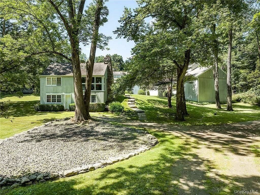 Set on 4.5 private acres adjacent to the 31-acre Morganthau Preserve, this exceptional Pound Ridge property offers privacy and versatility. Once part of the original Buckhorn Estate, the 9,000+ square-foot art barn—an architectural masterpiece originally designed to house the family's renowned art collection—presents extraordinary potential, including conversion to residential use. The main house is a cozy three-bedroom, three-bath cottage and a legal rental, ideal as a guest house or income property. A separate, newly renovated 500-square-foot cottage/studio features an open living space with kitchen, full bath, and fireplace. A unique opportunity combining history, tranquility, and endless possibilities in a quintessential Pound Ridge setting