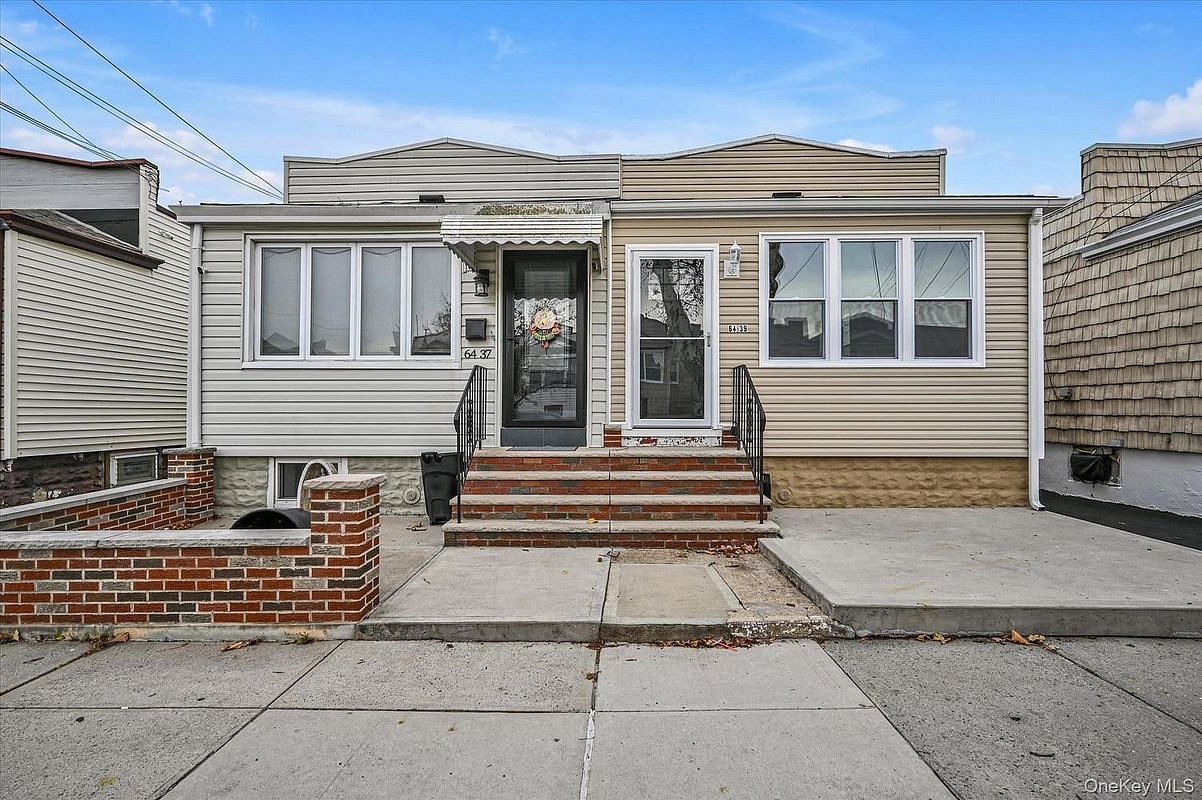 Excellent opportunity in Maspeth horseshoe this one family ranch has much to offer 16x44 building size with a full finished basement to go with it and a driveway and one car garage, house is fully updated and in move in condition with hardwood floors throughout and a modern layout with 2 bedrooms on the first floor to go along with a full bathroom and a nice living and dining area , the basement is finished with a family room full bath office and one other room , new roof , new windows , new siding this house is in move in condition .