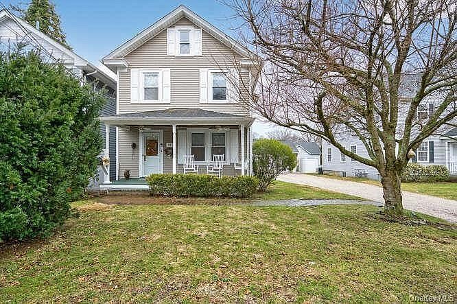 Experience the timeless appeal of this 1913 classic, perfectly situated in the heart of Locust Valley. This two-story residence offers a unique opportunity to own a piece of the North Shore's rich history, blending vintage character with the modern comforts such as brand new windows, gas heat and efficient split units for air conditioning. A welcoming front porch, complete with space for traditional rockers, sets the stage for this cozy retreat. The main level features a spacious living room centered around a gas stove, a formal dining room bathed in natural light from a classic bay window, and a tastefully updated kitchen. The second floor houses three bedrooms and a full bathroom, providing a private and peaceful living quarters. A full attic offers expansive storage solutions, while the basement features convenient Bilco doors for easy outdoor access. Car enthusiasts and hobbyists will appreciate the two-car heated garage, thoughtfully designed with high ceilings to accommodate two vehicle lifts. The home boasts an oversized yard ready for entertaining and gardening. Perfectly positioned within the Locust Valley school district, this home is just moments away from the village's renowned boutiques, fine dining, and the LIRR for a seamless commute to Manhattan.